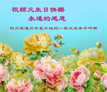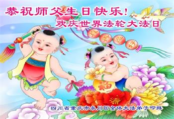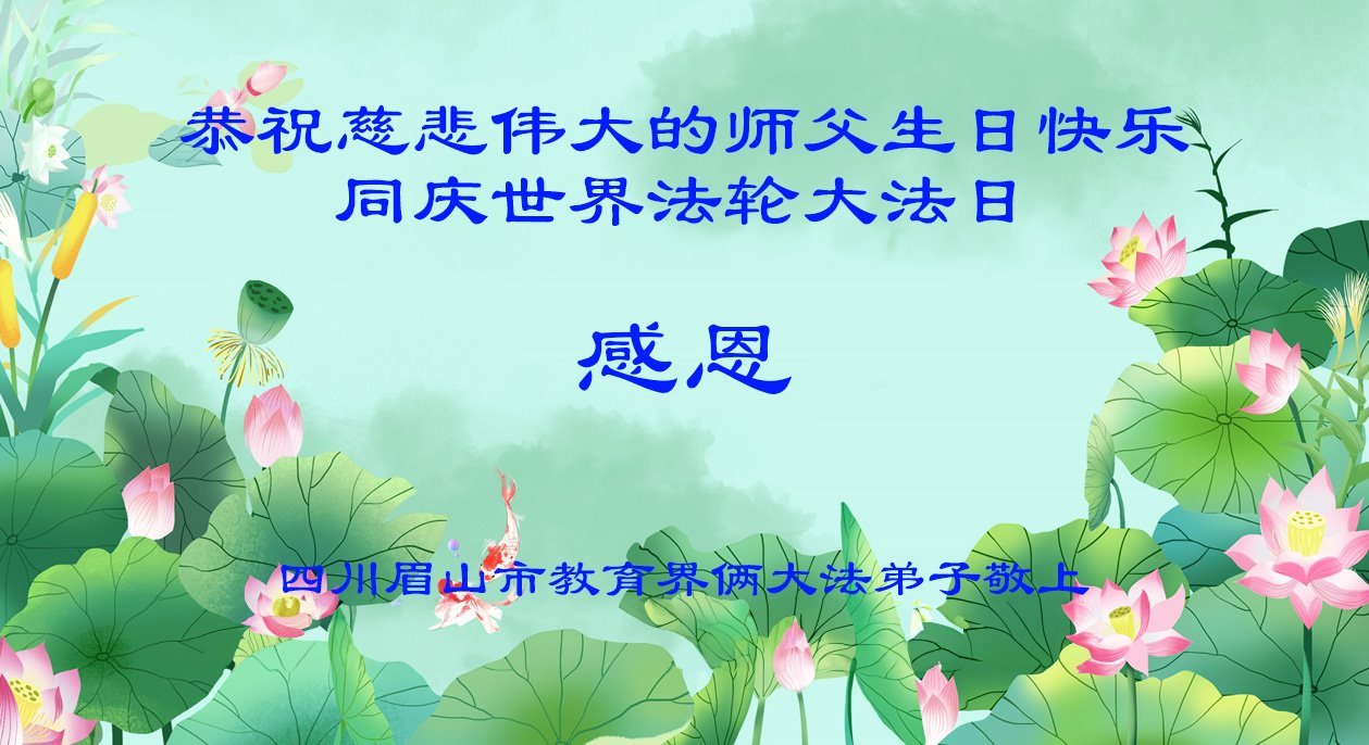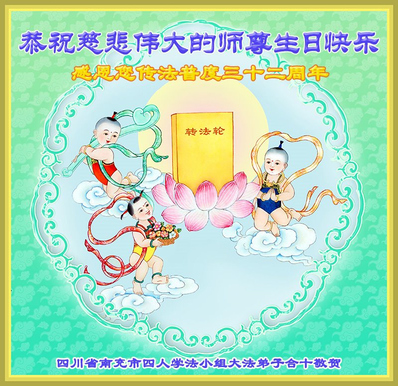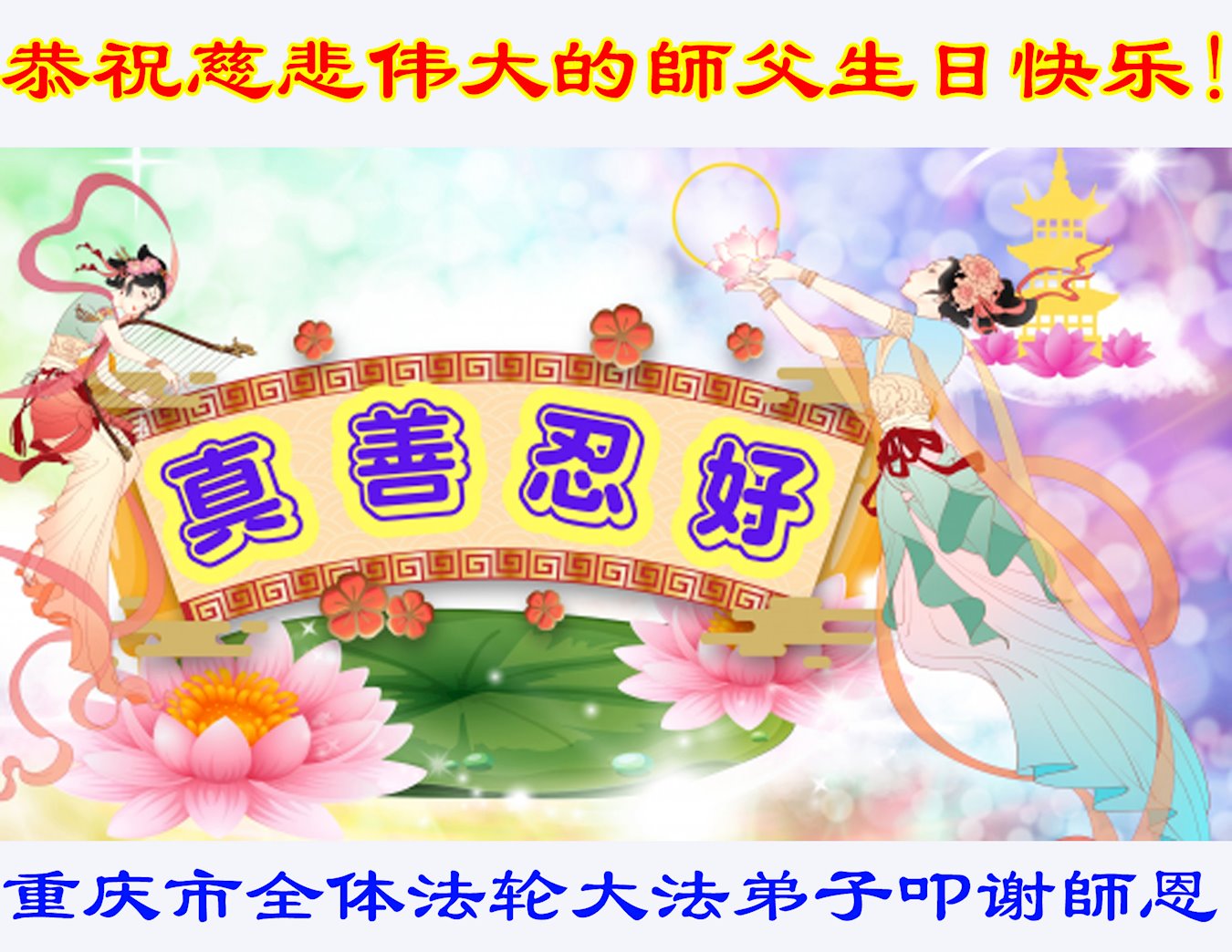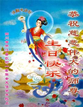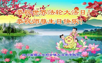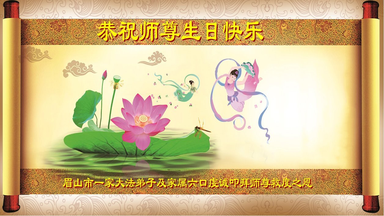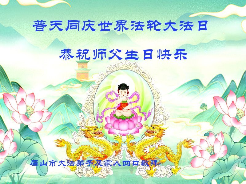 四川省眉山市一便利店全体明真相的员工敬祝伟大慈悲的李洪志大师生日快乐!您辛苦了,您传出的宇宙大法真、善、忍,教人做一个好人,让社会道德回升。我们店的全体员工向大师致以最崇高的敬意!向大师叩拜!