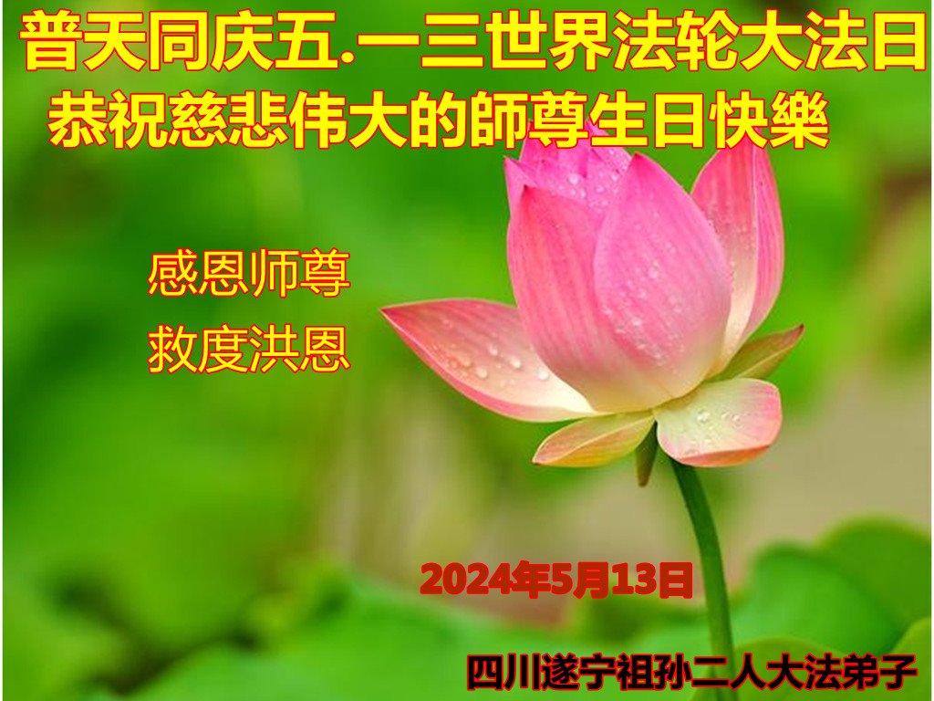 <英文版: https://en.d2s3ombhnov3zf.cloudfront.net/html/articles/2024/5/11/217053.html>中国百姓祝贺世界法轮大法日 恭贺李大师华诞