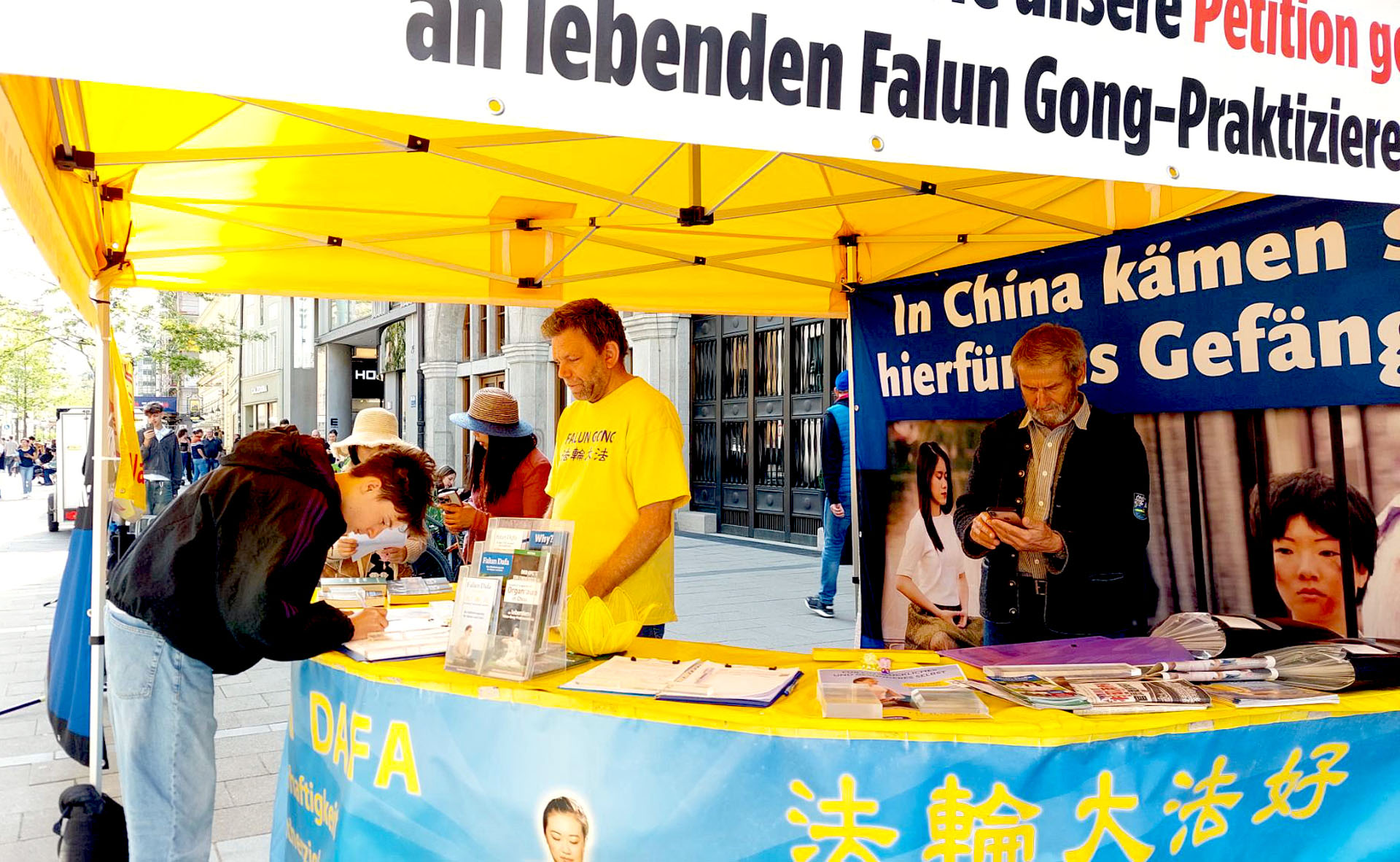 ![]() 图2~3:二零二四年五月四日,慕尼黑法轮功学员在市中心步行街举办活动。图为民众签名声援法轮功学员反迫害。 |