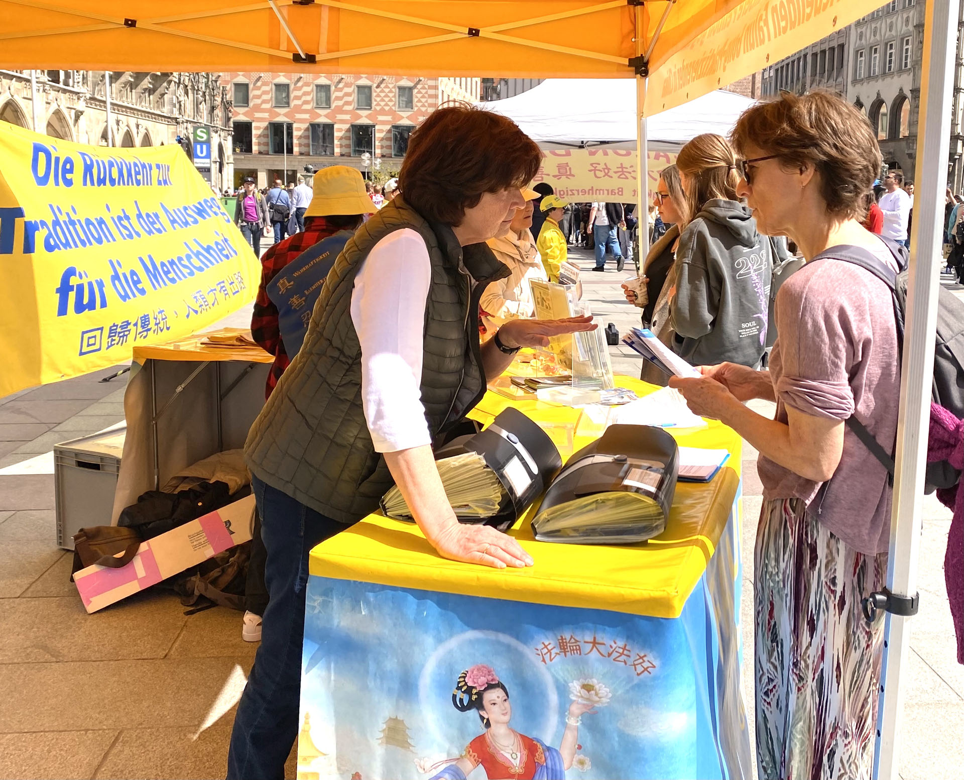 ![]() 图1:二零二四年四月二十四日,慕尼黑法轮功学员在市中心市政府楼前的玛利亚广场举办活动,展示法轮功的美好,揭露中共迫害法轮功的罪恶。 |