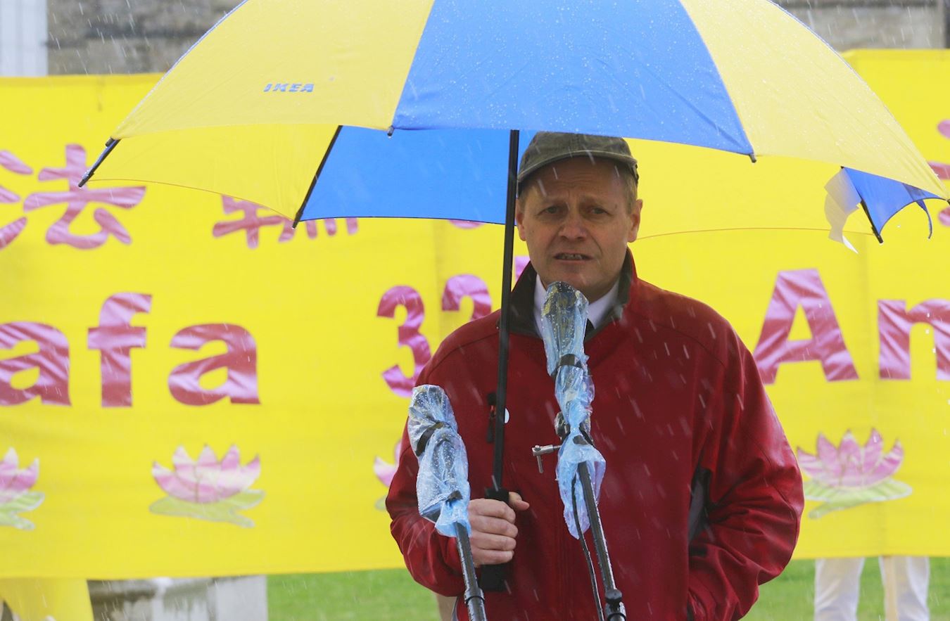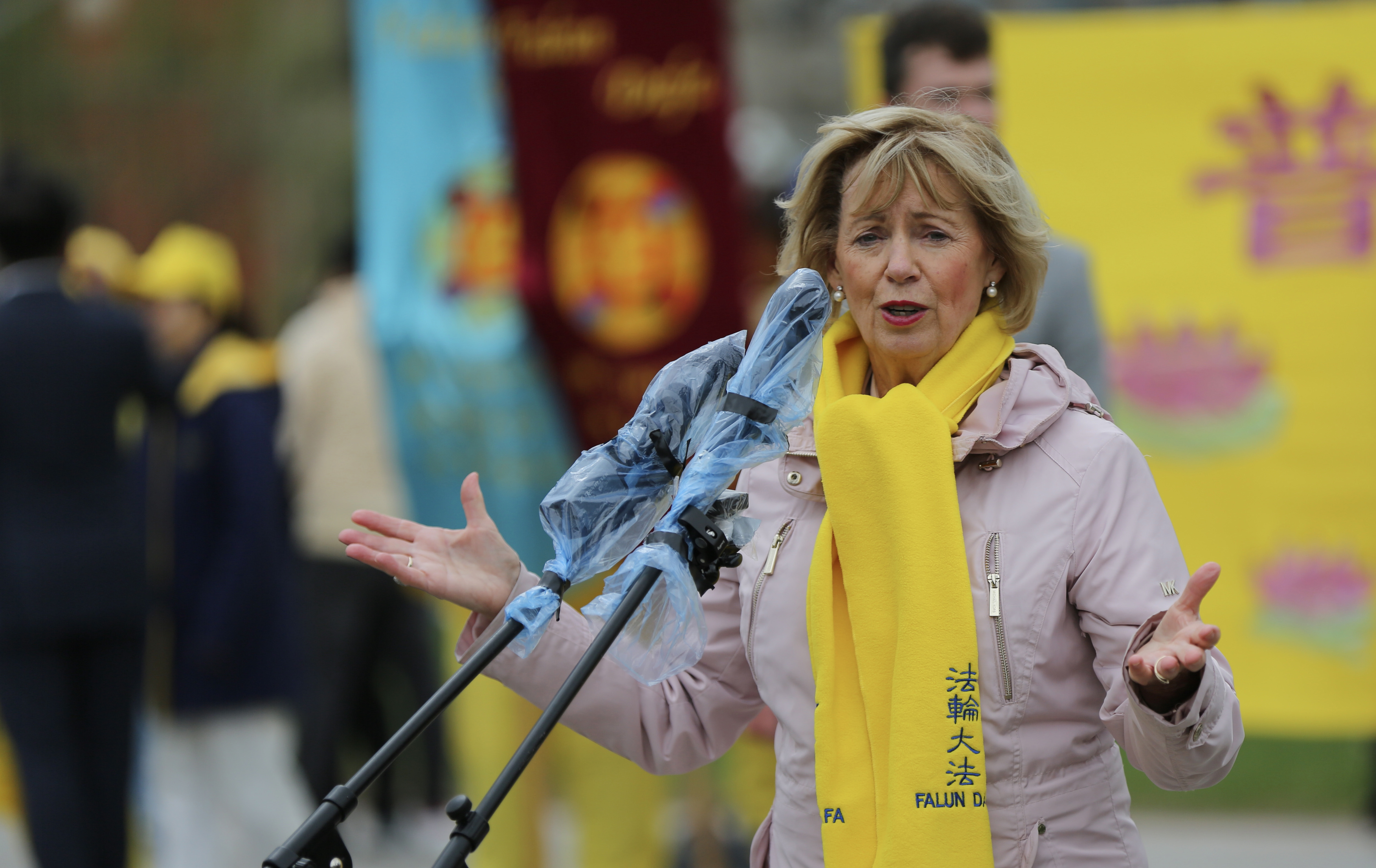 国会法轮功之友联合主席、资深自由党国会议员朱迪·斯格罗(Judy Sgro)说:“今晨暴雨如注,我真是为你们担心。但我心里有个预感,无论天气如何,晴空万里、酷热难耐或是瓢泼大雨,凭借你们对信念的坚持,你们定会如期而至。我深知,你们每一位都会来到这里。”