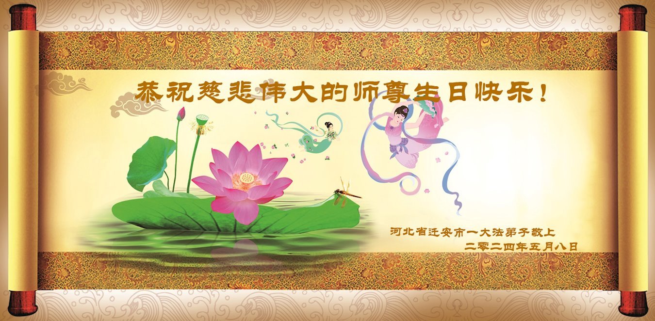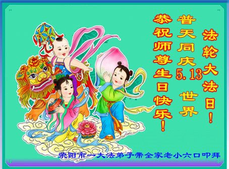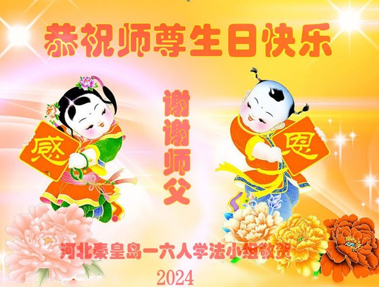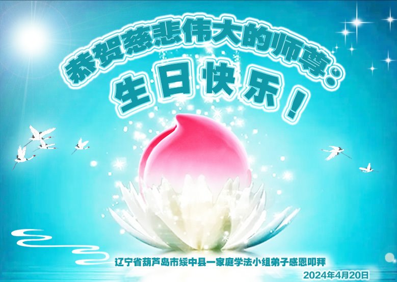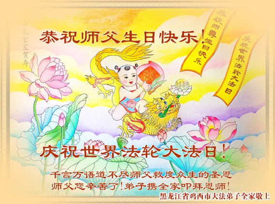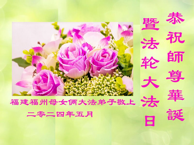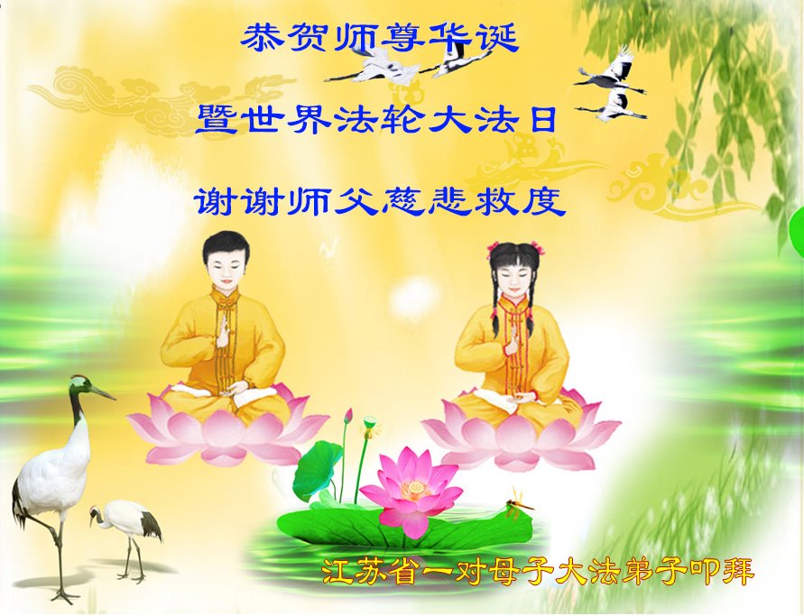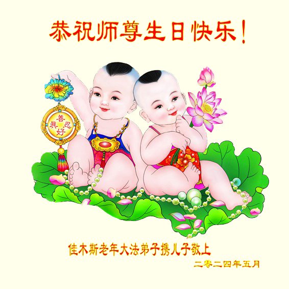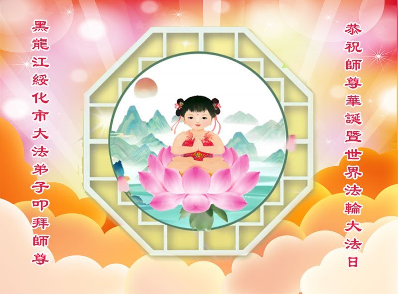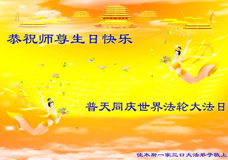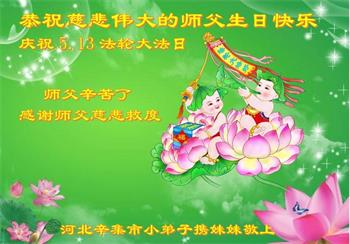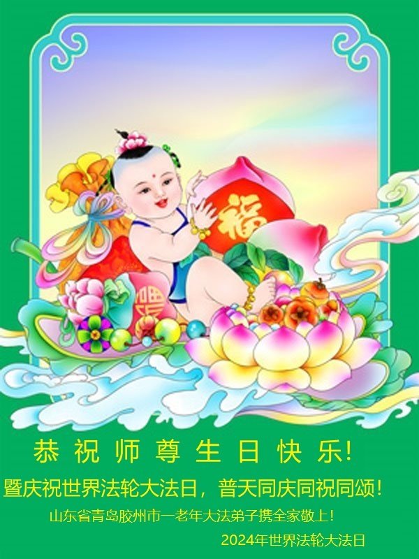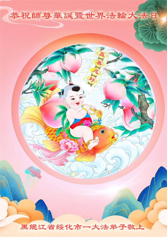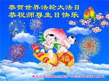我是年轻妈妈,炼功四月有余,感受到大法的超常与神奇,身体与身心都得到了净化,谢谢师父的慈悲救度。我代表修炼多年的婆婆还有小弟子及全家人恭祝师尊生日快乐! 感谢师尊的慈悲救度,感谢对我们全家人的呵护,我要好好修,我们全家人都想跟您回家。