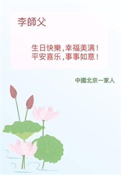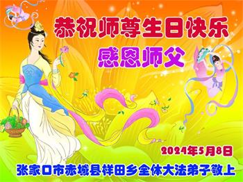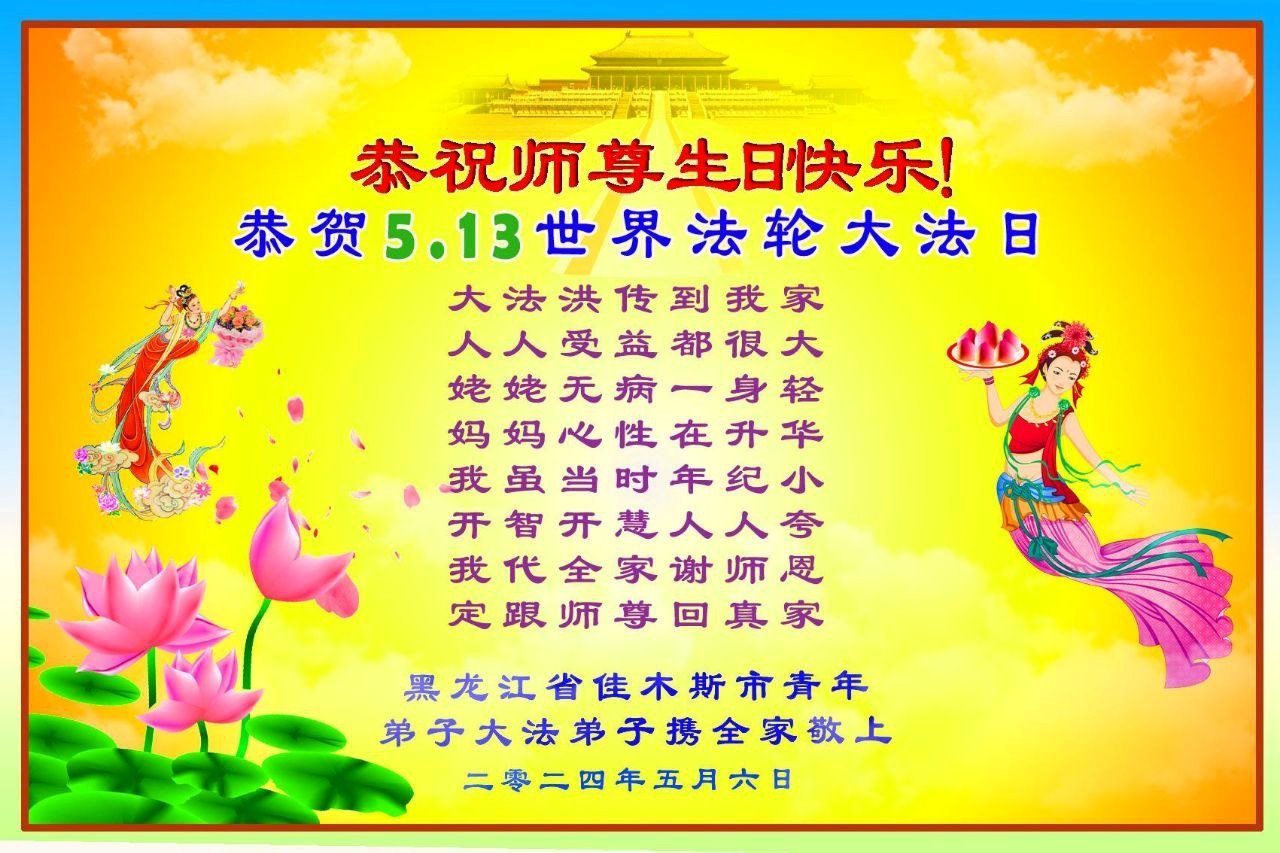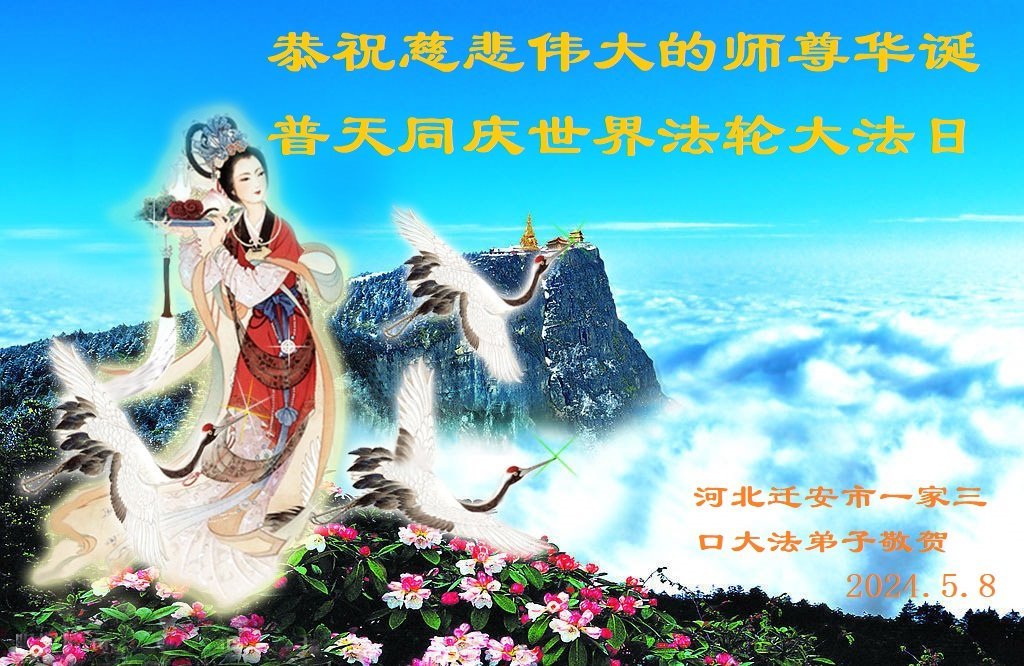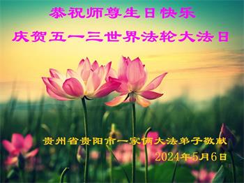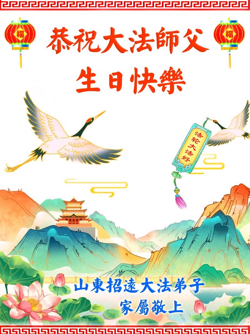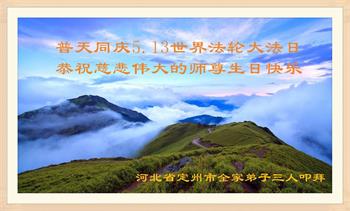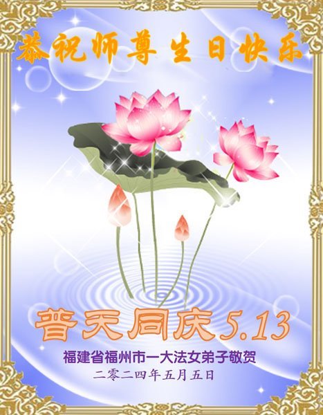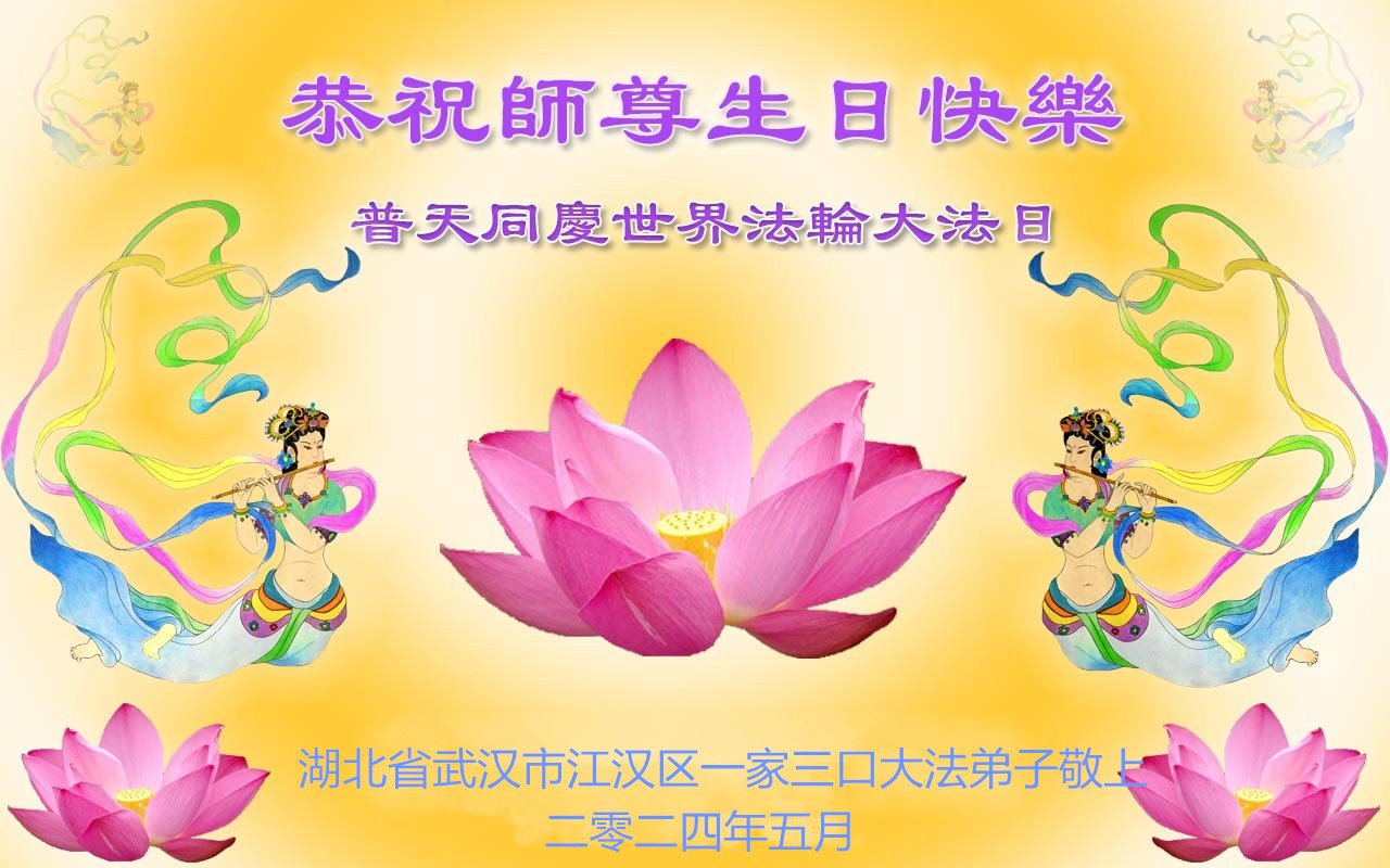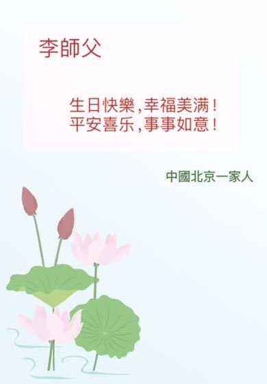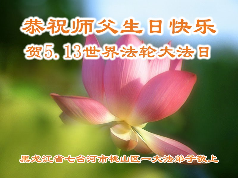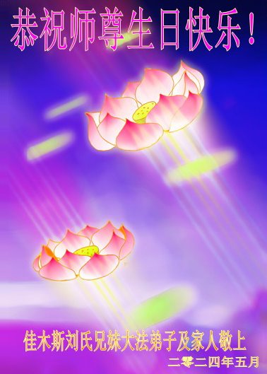 我是年轻妈妈,炼功四月有余,感受到大法的超常与神奇,身体与身心都得到了净化,谢谢师父的慈悲救度。我代表修炼多年的婆婆还有小弟子及全家人恭祝师尊生日快乐! 感谢师尊的慈悲救度,感谢对我们全家人的呵护,我要好好修,我们全家人都想跟您回家。