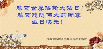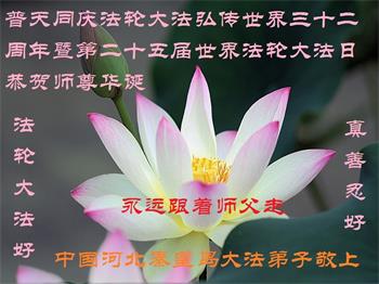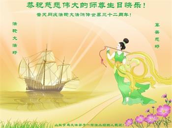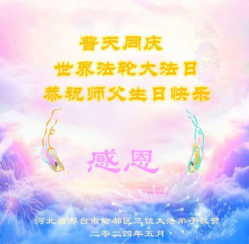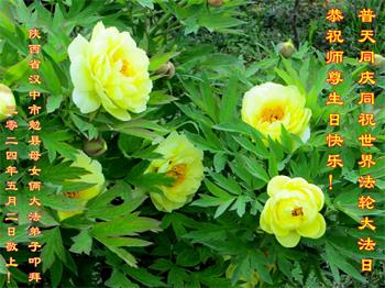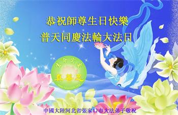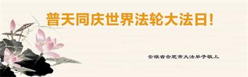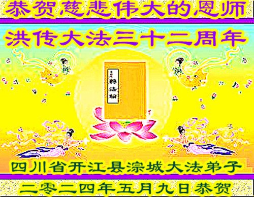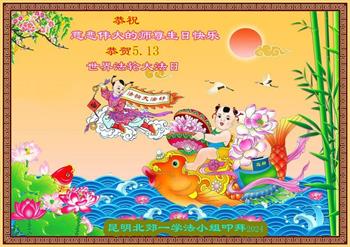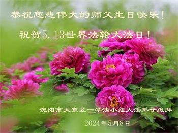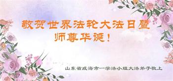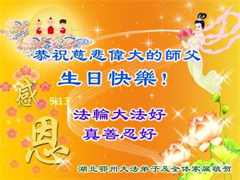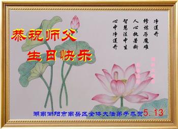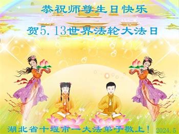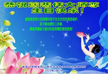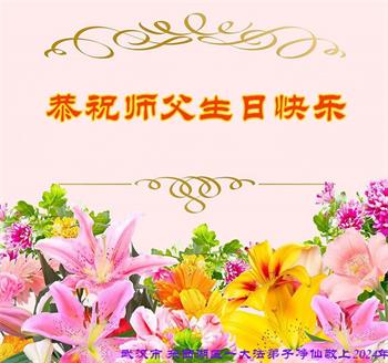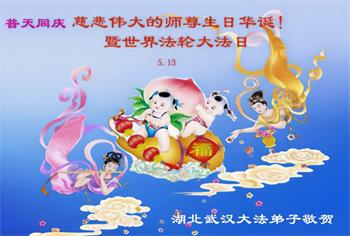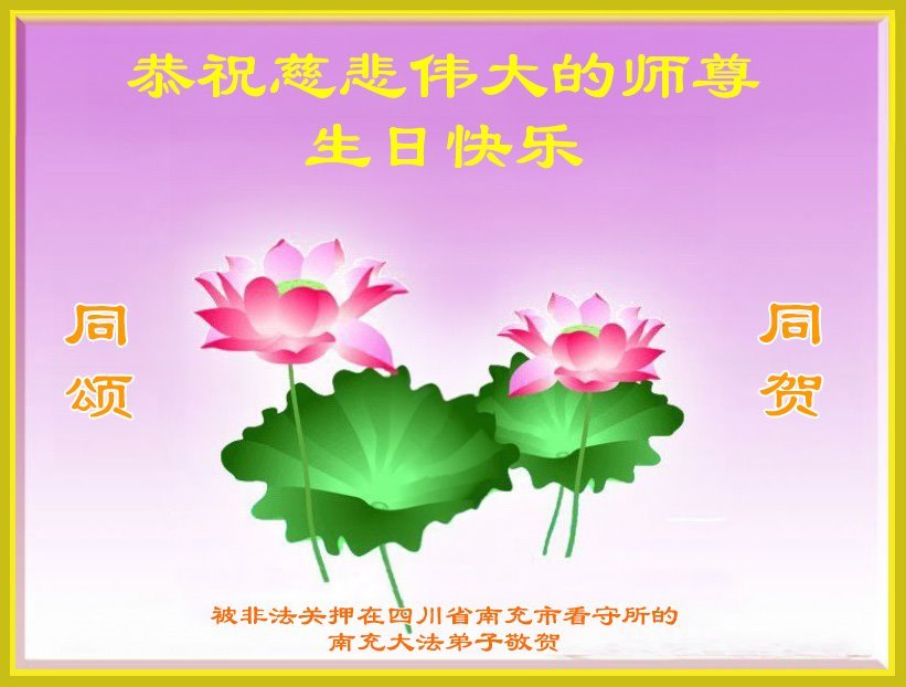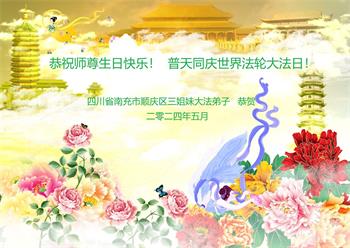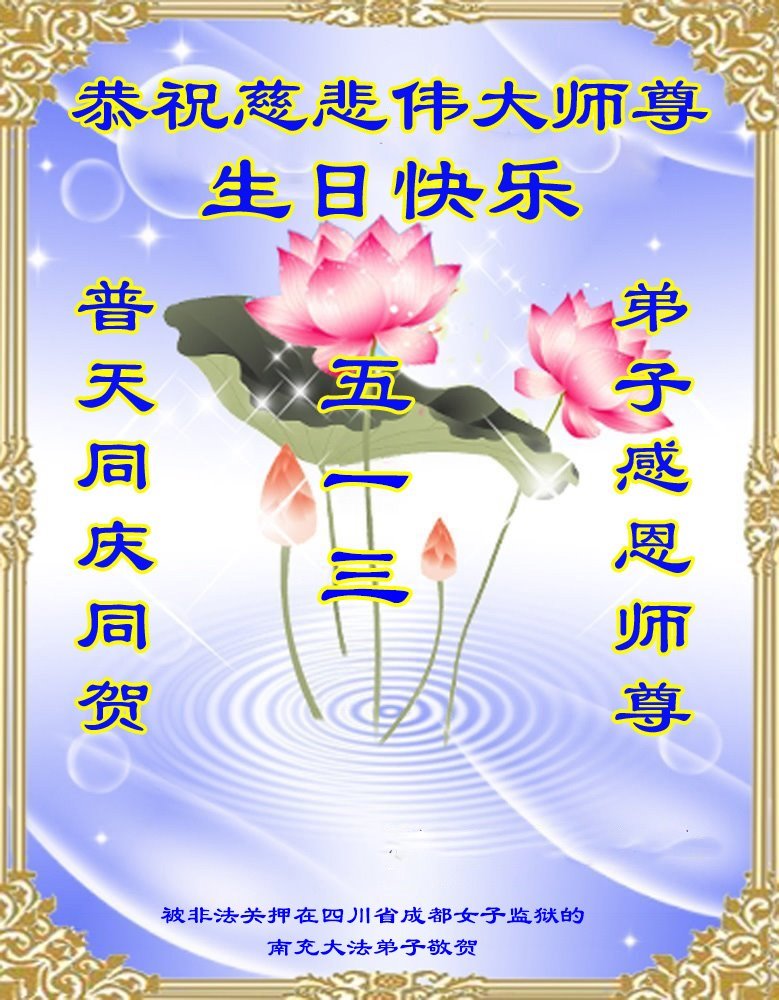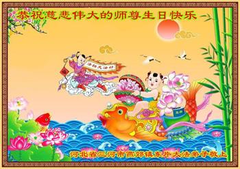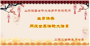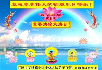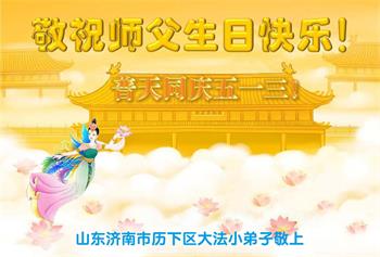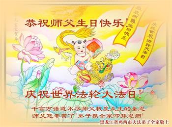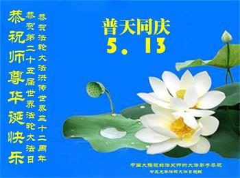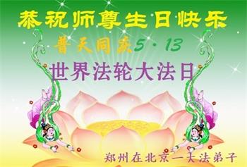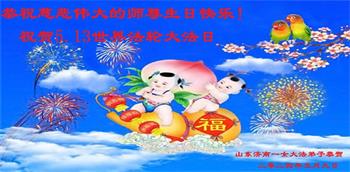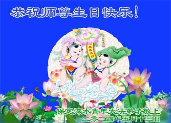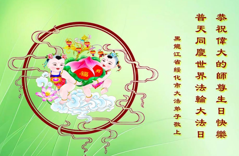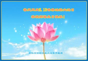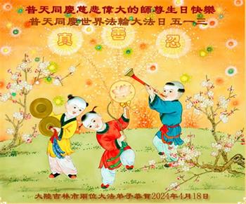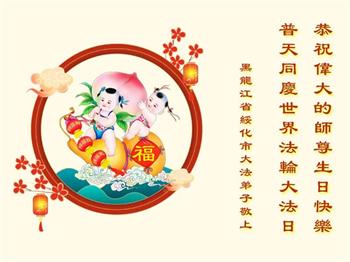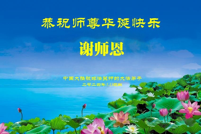 以下是部份被非法关押的中国大陆大法弟子发来的贺词庆祝师父华诞暨世界法轮大法日。