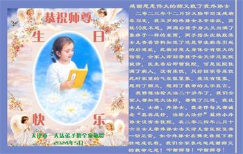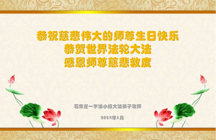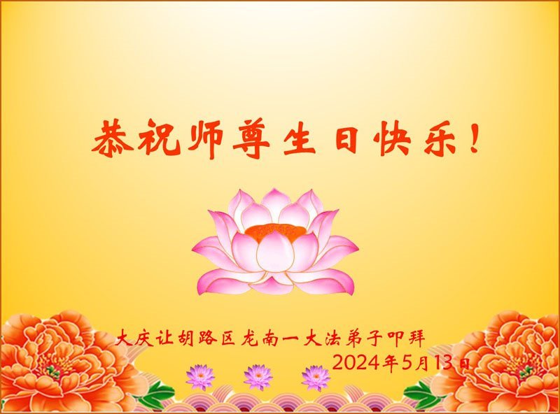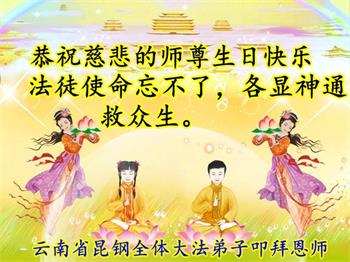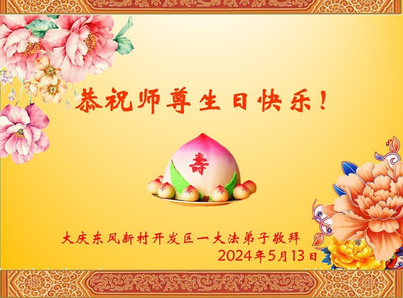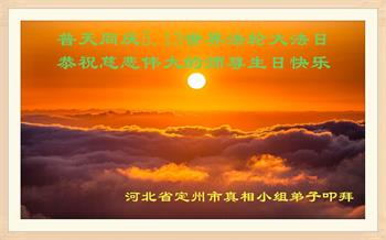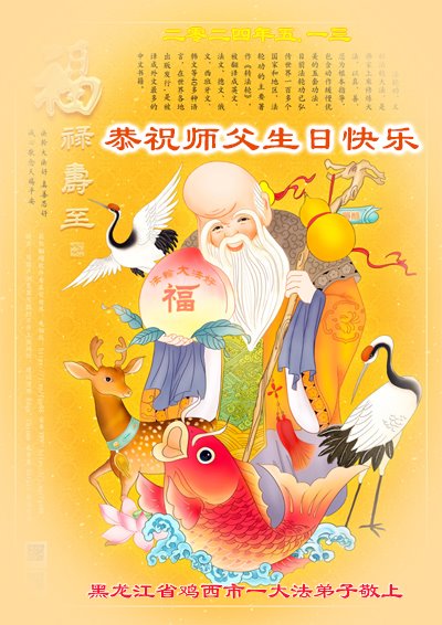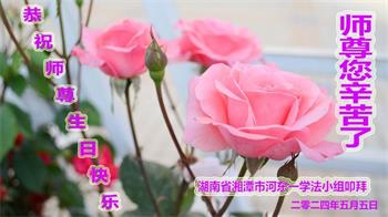 我是一名新学员,得法三个多月。我在体制内工作多年,受(邪*党-)毒害颇深。通过学法,让我对宇宙对生命对邪恶有了从新认识,震撼于大法之精深博大,感怀于师尊之思想伟力!遥祝师尊生日快乐!