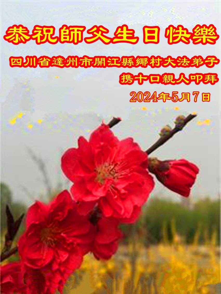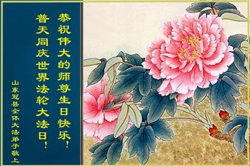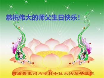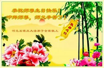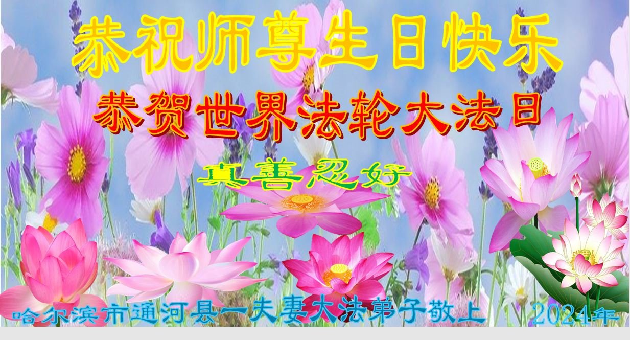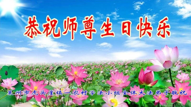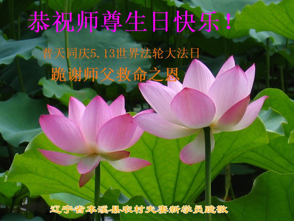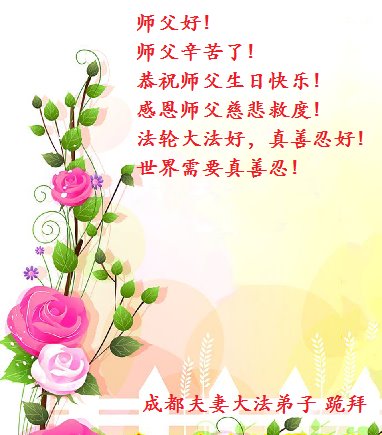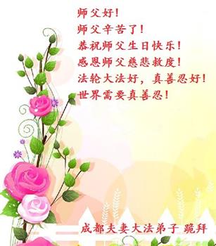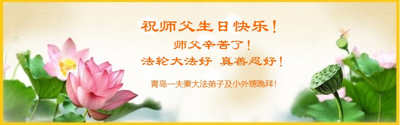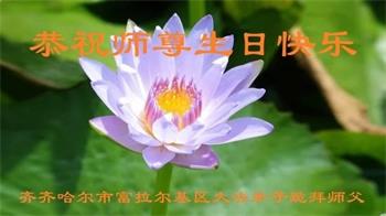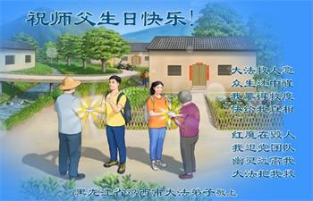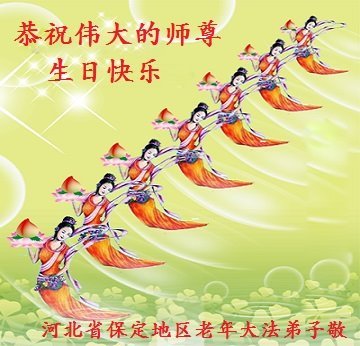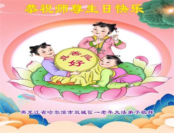 老伴也天天诚念“法轮大法好 真善忍好”,得了福报。老伴80岁了,不但身体硬朗还能下地干农活,不用子女操心,了解我们的人都知道是法轮功救了我的命。师父的救命之恩弟子永远不忘,祝恩师生日快乐!