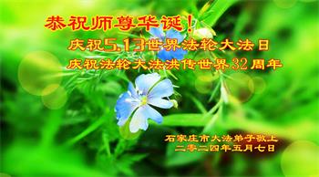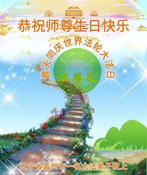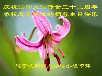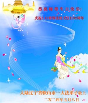 我是学法不久的新学员。得法前,在一次重大的事故中,是师父救了我的命,给了我第二次生命,在师父七十三岁华诞暨“五一三”世界法轮大法日之际,我怀着感恩的心,虔诚的向师父问一声:“师父好!”我一定听您的话,做您的真修弟子,跟师父回家。谢谢师父!