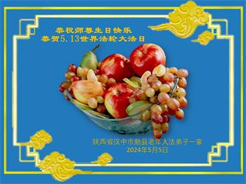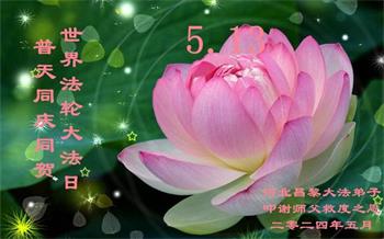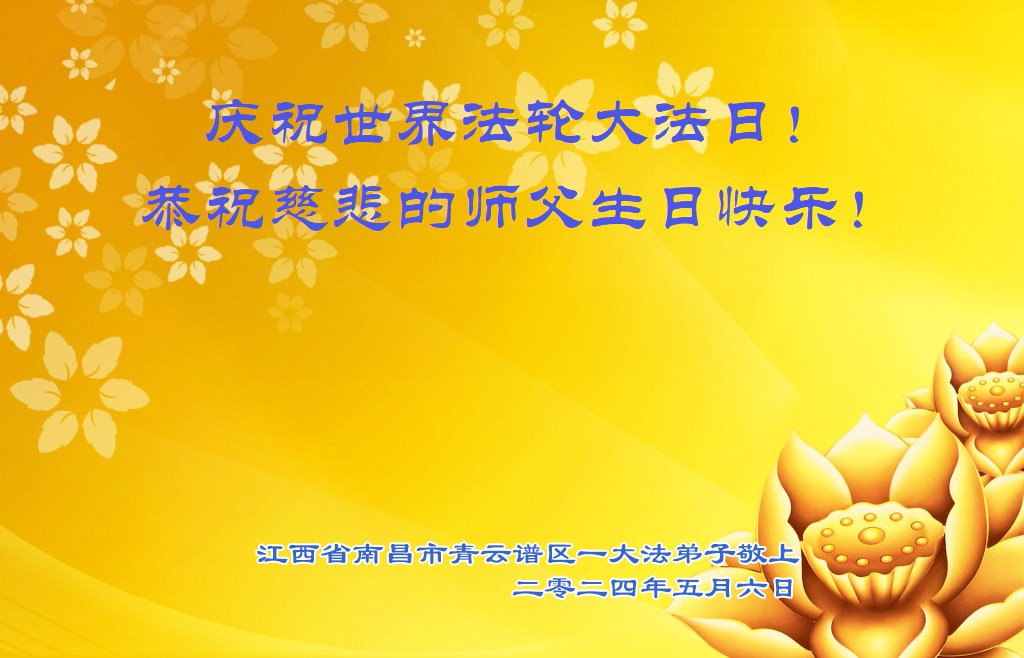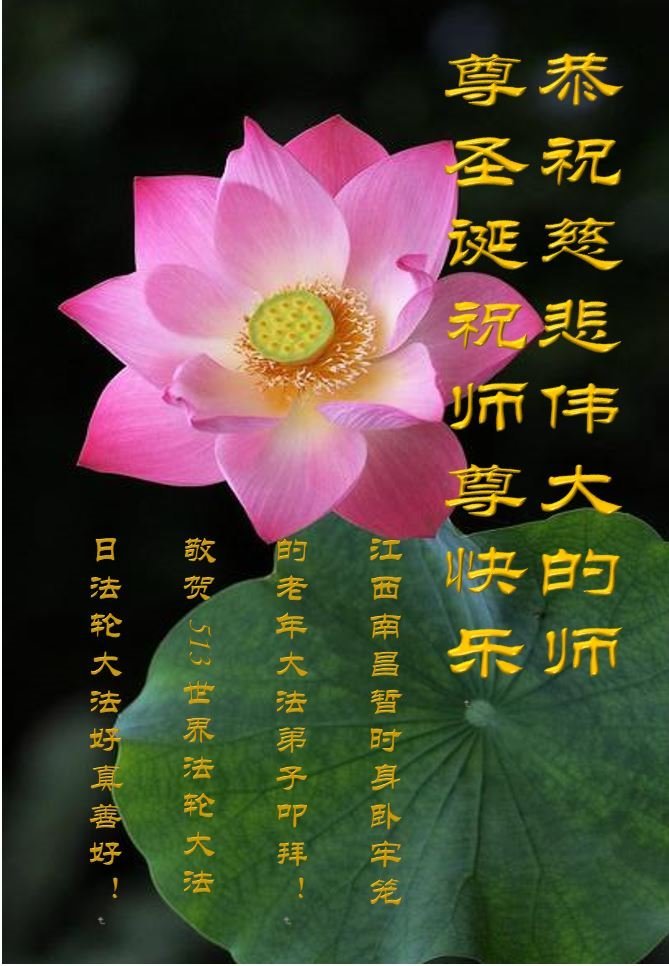 江西省南昌市西湖区一新学员问候师父:“师父好!前年我不幸患上晚期癌症且已转移到头部,昏迷,被送医院救治,生命垂危。二零二三年夏季,我有幸得法修炼,通过学法炼功,我真切感受到了师父为我清理调整身体。如今我不仅停掉了全部药物,而且身体状况越来越好,还能照看小外孙女。值此‘5.13’世界法轮大法日,我给师父叩首合十!感谢师父的救命之恩!”