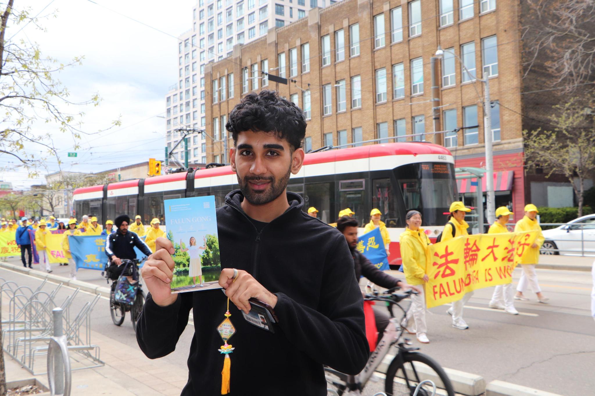 萨利科(Salik)在多伦多大学读书,学习经济与政治学,他说:“我第一次看到这个游行,我觉得特别酷,十分喜欢。这个游行传递着文化。我听到的音乐以及学员的着装都赏心悦目。”