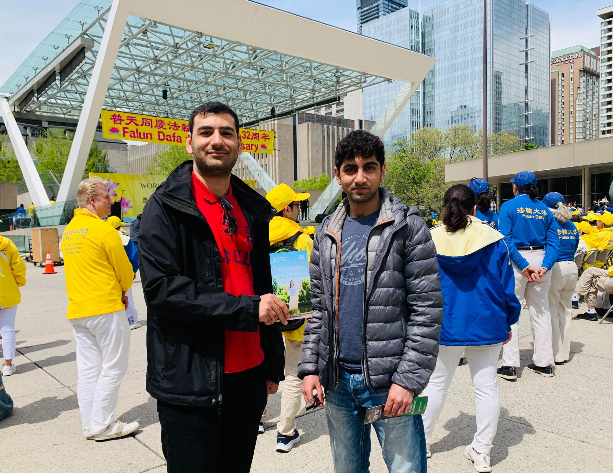 阿尔法恩(Erfan)居住在多伦多,而梅迪(Medhi)来自德国。他们在广场上观看了法轮功学员庆祝活动的文艺演出。梅迪最喜欢女孩们蒙古舞的表演,阿尔法恩则最喜欢琵琶的乐曲演奏。