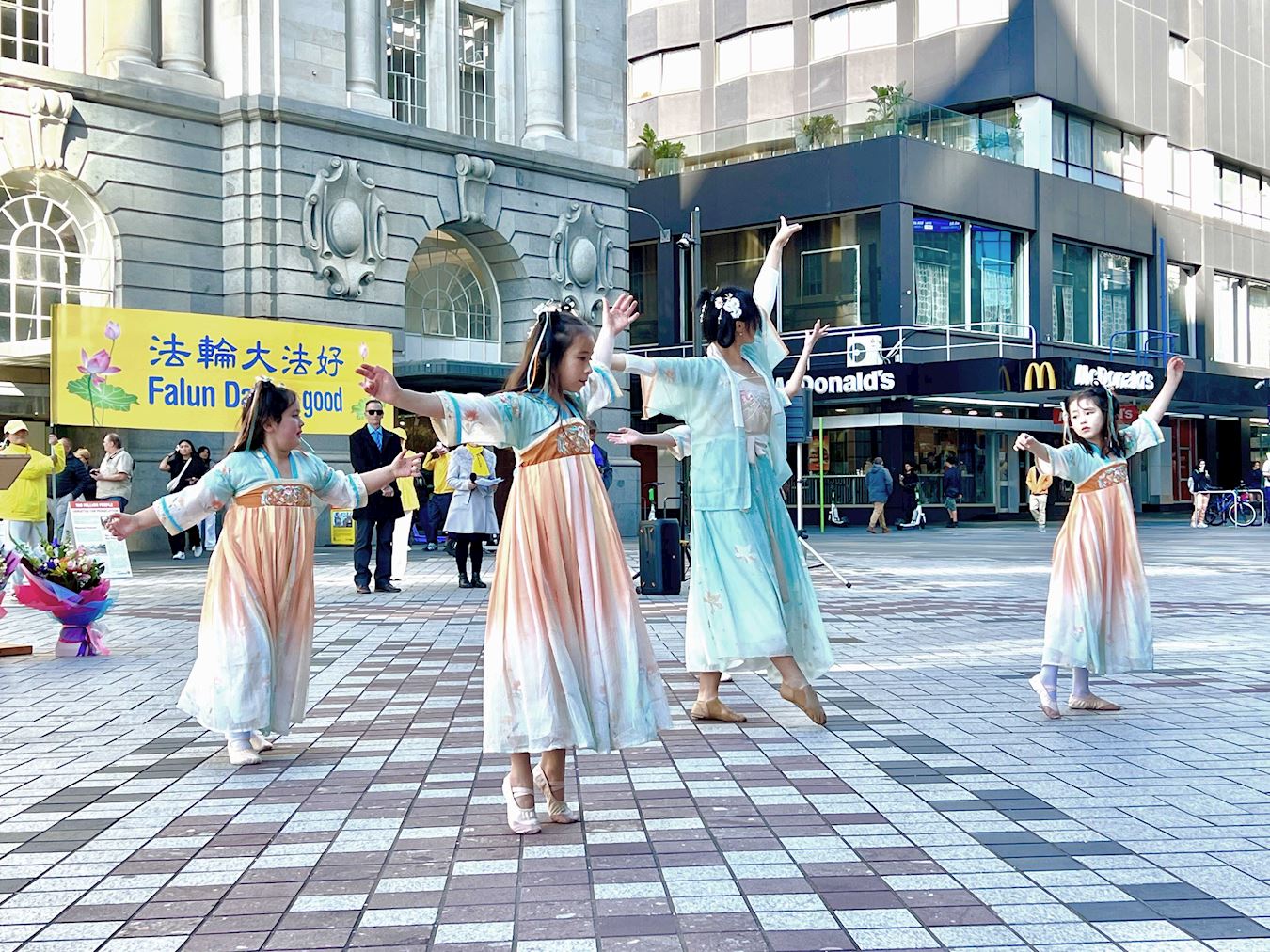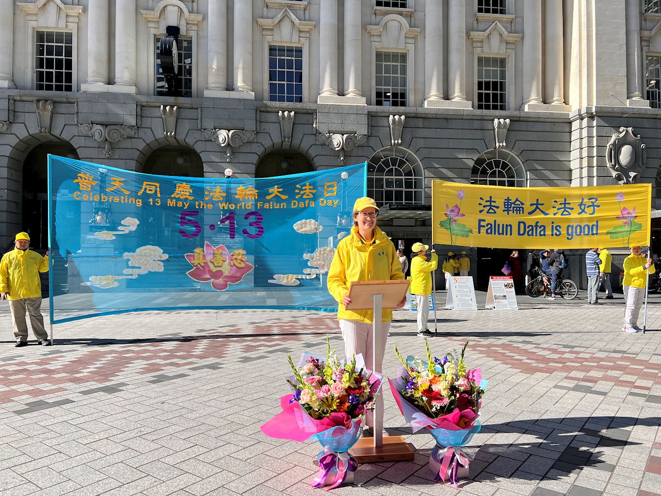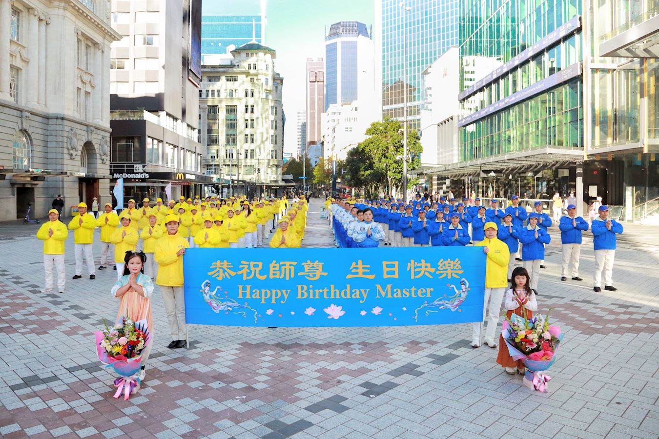 ![]() 图1:二零二四年五月十一日,新西兰法轮功学员在奥克兰市中心伊丽莎白(Elizabeth Square)广场庆祝世界法轮大法日,恭祝伟大的师尊生日快乐。 |