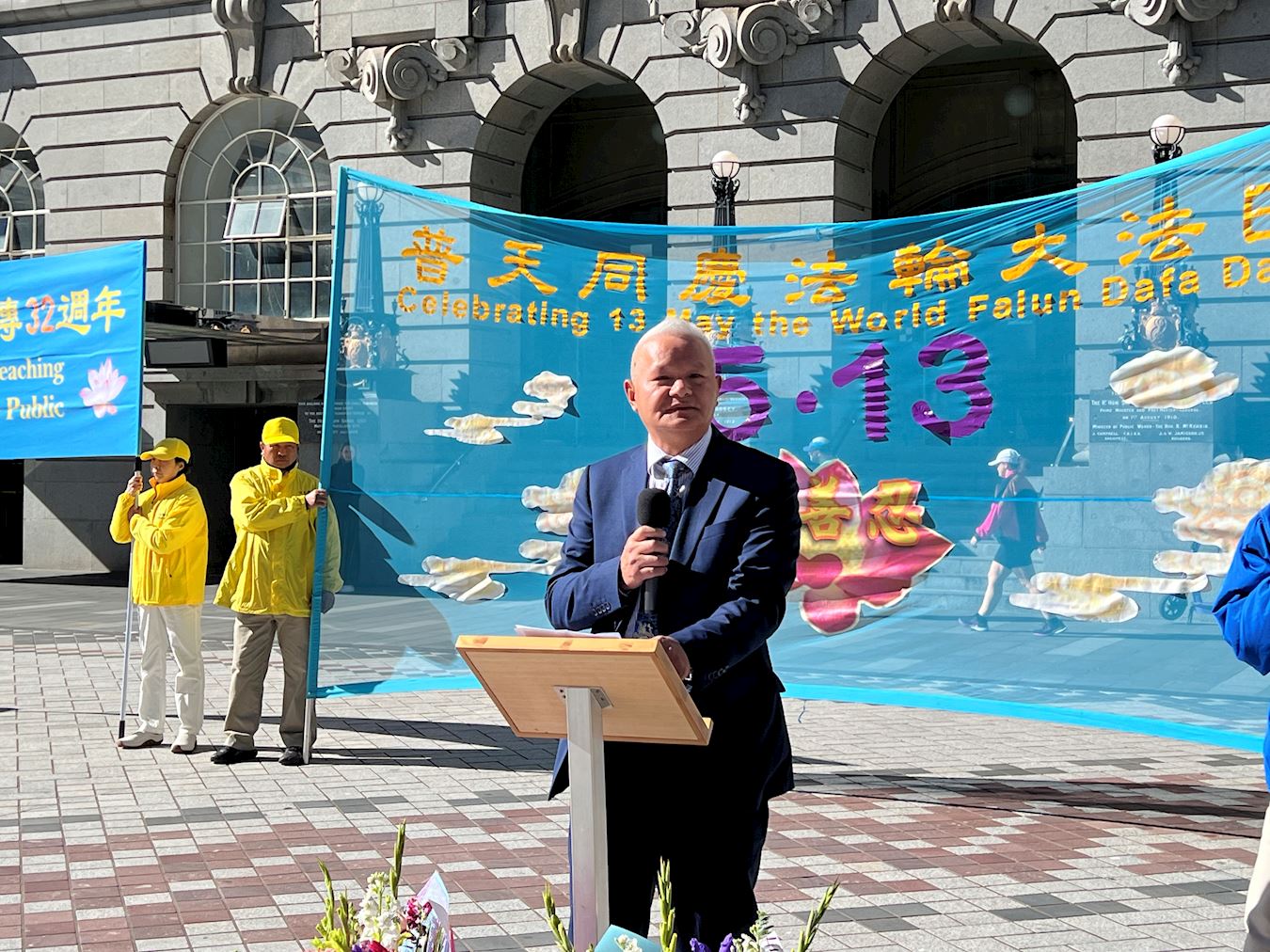 华人篮球教练张洛奇(Rocky Zhang)在发言中说:“法轮大法的纪念活动意义重大,他提醒我们在生命中不断修行,继续向神靠近,也是我们表达对法轮大法的敬意和感恩之情的时刻。”