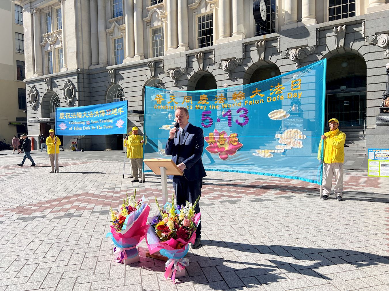 集会上,法轮功学员分享了修炼法轮功后,疾病痊愈、身心受益的亲身经历,他们表达了对师尊的无限感恩。新西兰人权律师凯瑞·高尔(Kerry Gore)、华人篮球教练张洛奇(Rocky Zhang)、新西兰民主义工约翰逊(Johnson)到场支持,并发表演讲。