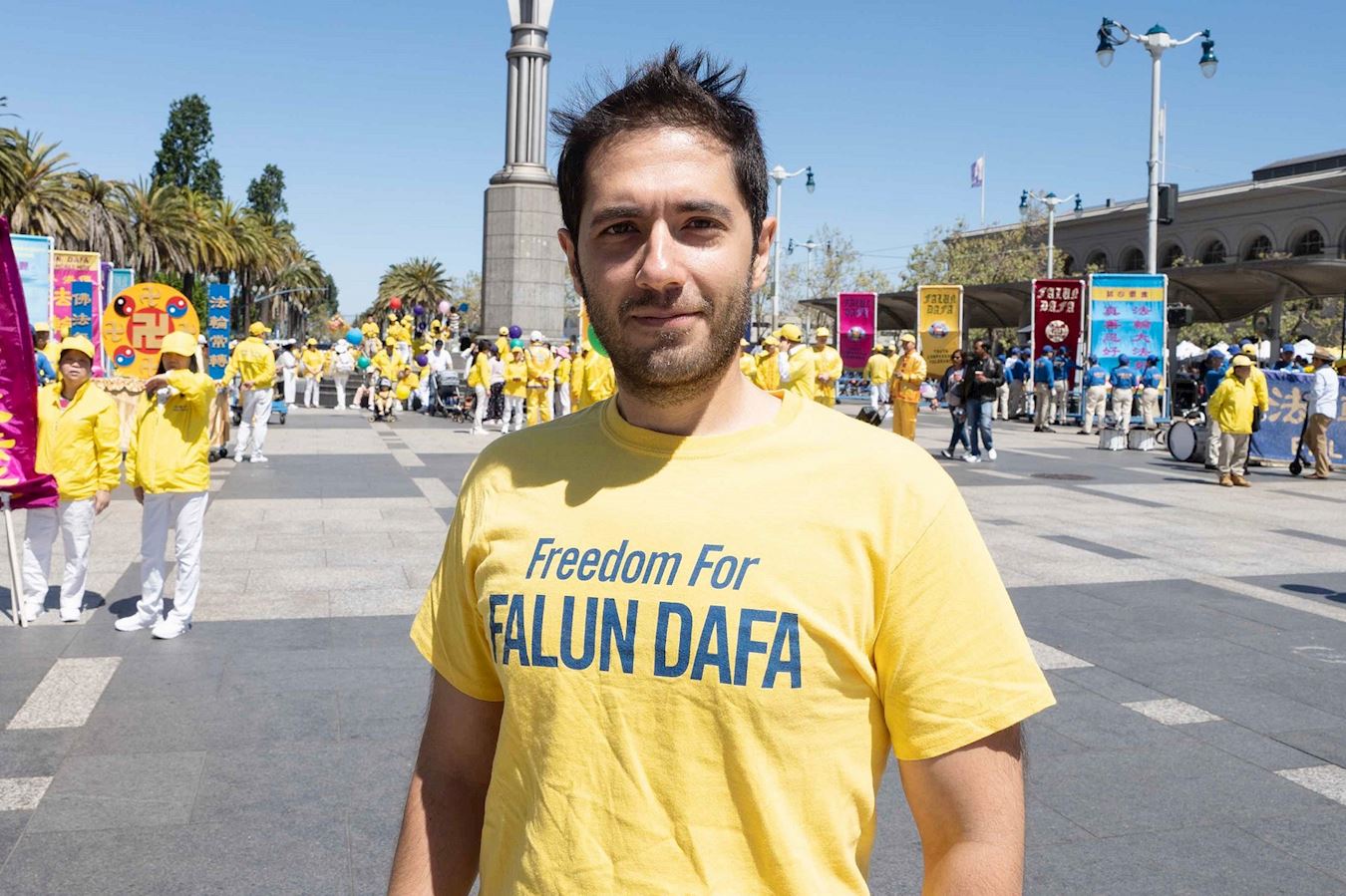 伊朗裔法轮功学员尼维德·瓦纳希(Nivid Vanahi)参加了当天的庆祝活动。他于二零零三年开始修炼法轮功。修炼前,他一直探索宇宙的奥秘,人生的目的。并涉猎许多宗教,但一直找不到答案,他说:“我阅读法轮功的书籍《转法轮》后,明白了人是从哪里来的,也了解了宇宙的奥秘。我发现法轮功就是我一直在寻找的。我在法轮功里找到了所有的答案。”
