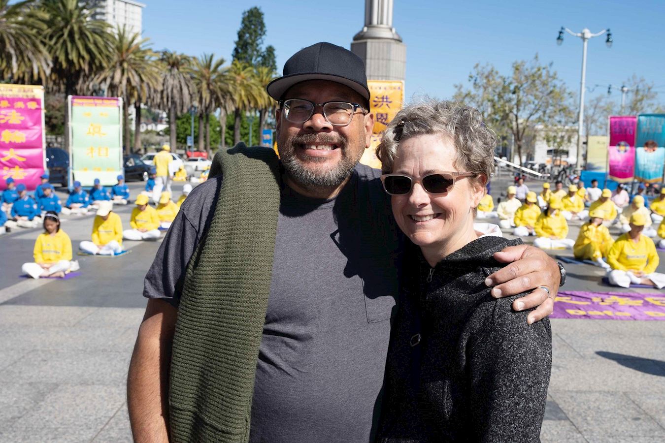 维姬(Vicki)和克雷格(Craig)了解到中共对法轮功的迫害,一起谴责中共的暴行。维姬说,“中共对法轮功的迫害太恐怖了,你们(法轮功学员)是和平的团体,谁会不喜欢这个原则呢?”