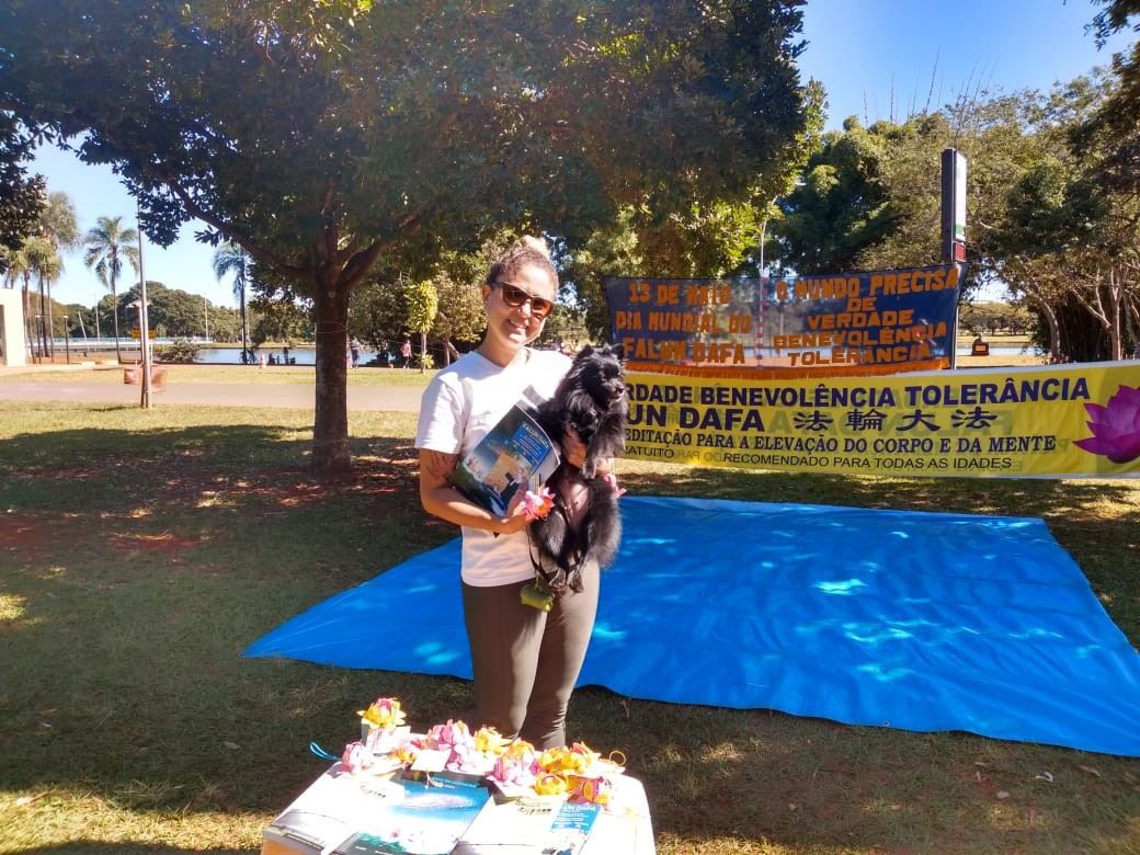 巴西利亚是巴西联邦共和国的首都,也是巴西第四大城市。这里地处高原,风光秀丽,气候宜人。五月十二日这一天艳阳高照、天空晴朗,绿树在微风中轻舞,小鸟都在欢唱,普天同庆。法轮功学员们庆祝法轮大法日,感恩创世主救度之恩!