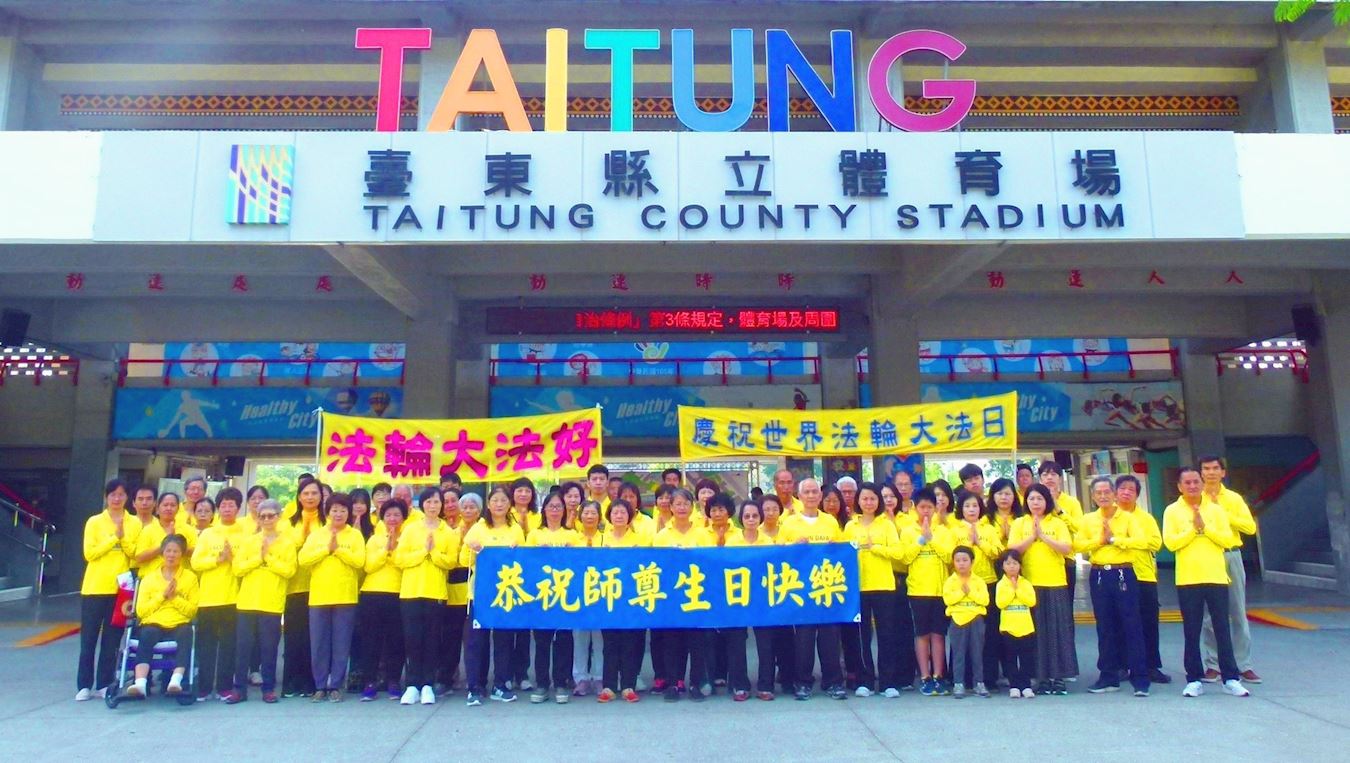 ![]() 图1:二零二四年五月十一日,台东法轮功学员齐聚在台东县立体育场前,恭祝师尊生日快乐。 |