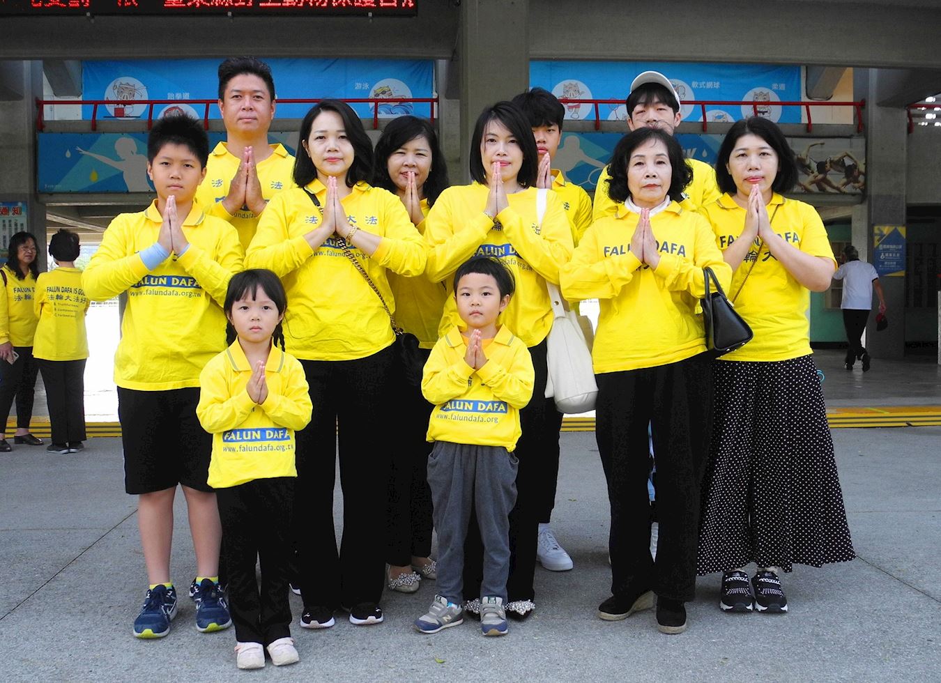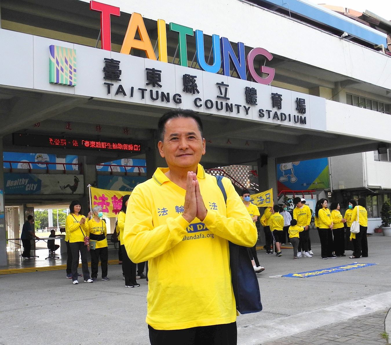 台东新、老学员齐聚于县立体育场前合影,双手合十表达对师尊的感恩。他们说,修炼大法后全家受益,即使未修炼的家人,也都同沐法光,感恩师父的慈悲保护和救度。