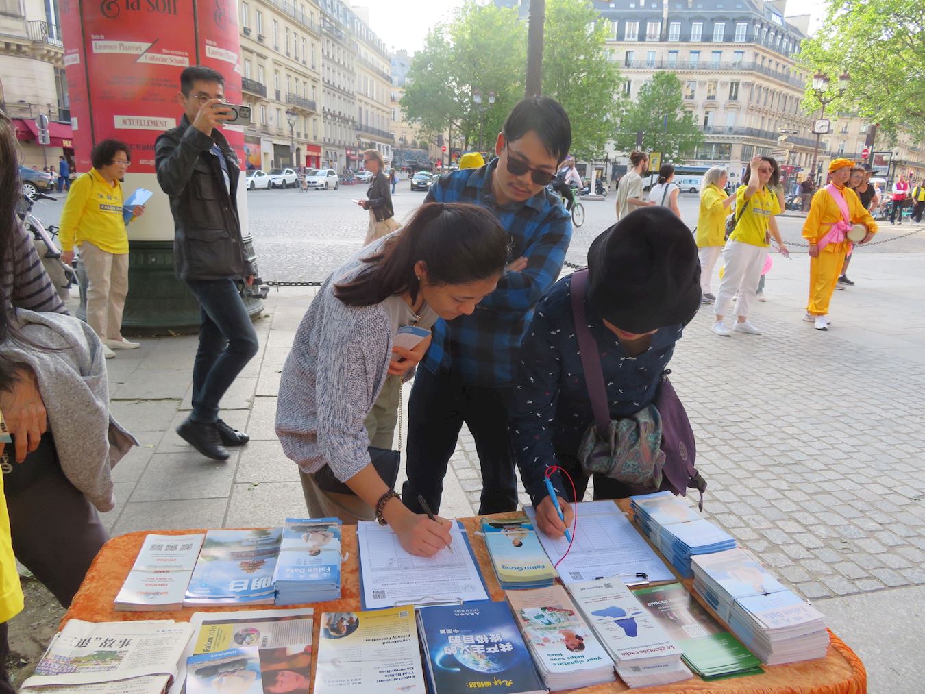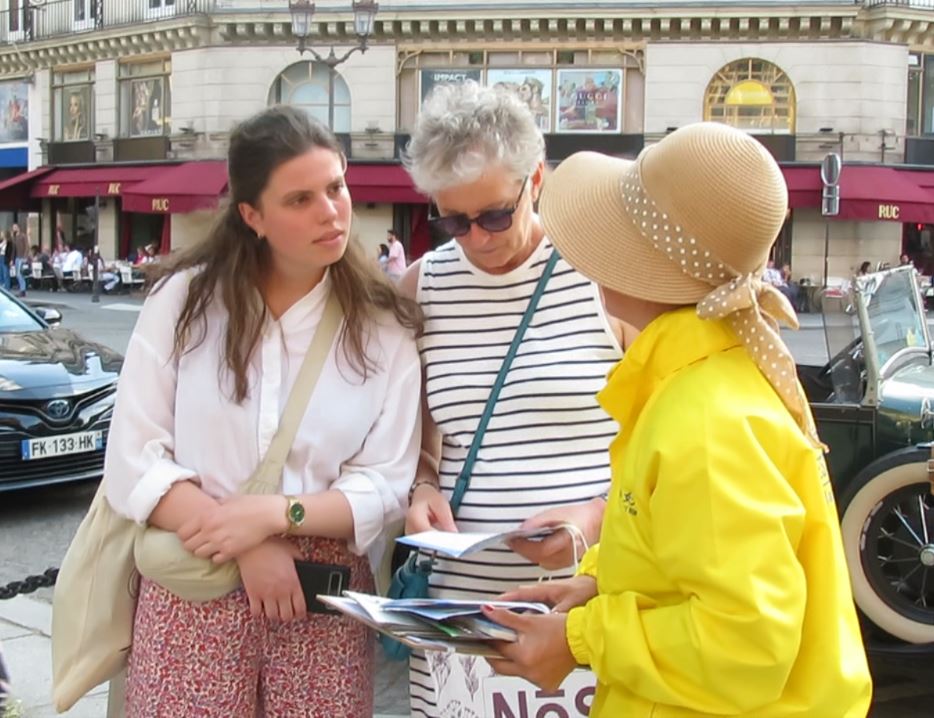 为庆祝法轮大法日,二零二四年五月十二日,法国西部地区部分大法弟子在雷恩(Rennes)市进行了集体炼功活动。五月十一日傍晚,巴黎部分大法弟子在卢浮宫旁的柯莱特广场(Place Colette)举行了集体炼功和讲真相活动。活动吸引了来往的民众和游人。看到法轮功学员祥和的功法表演,人们赞扬真、善、忍是人们在生活中应该拥有的价值。