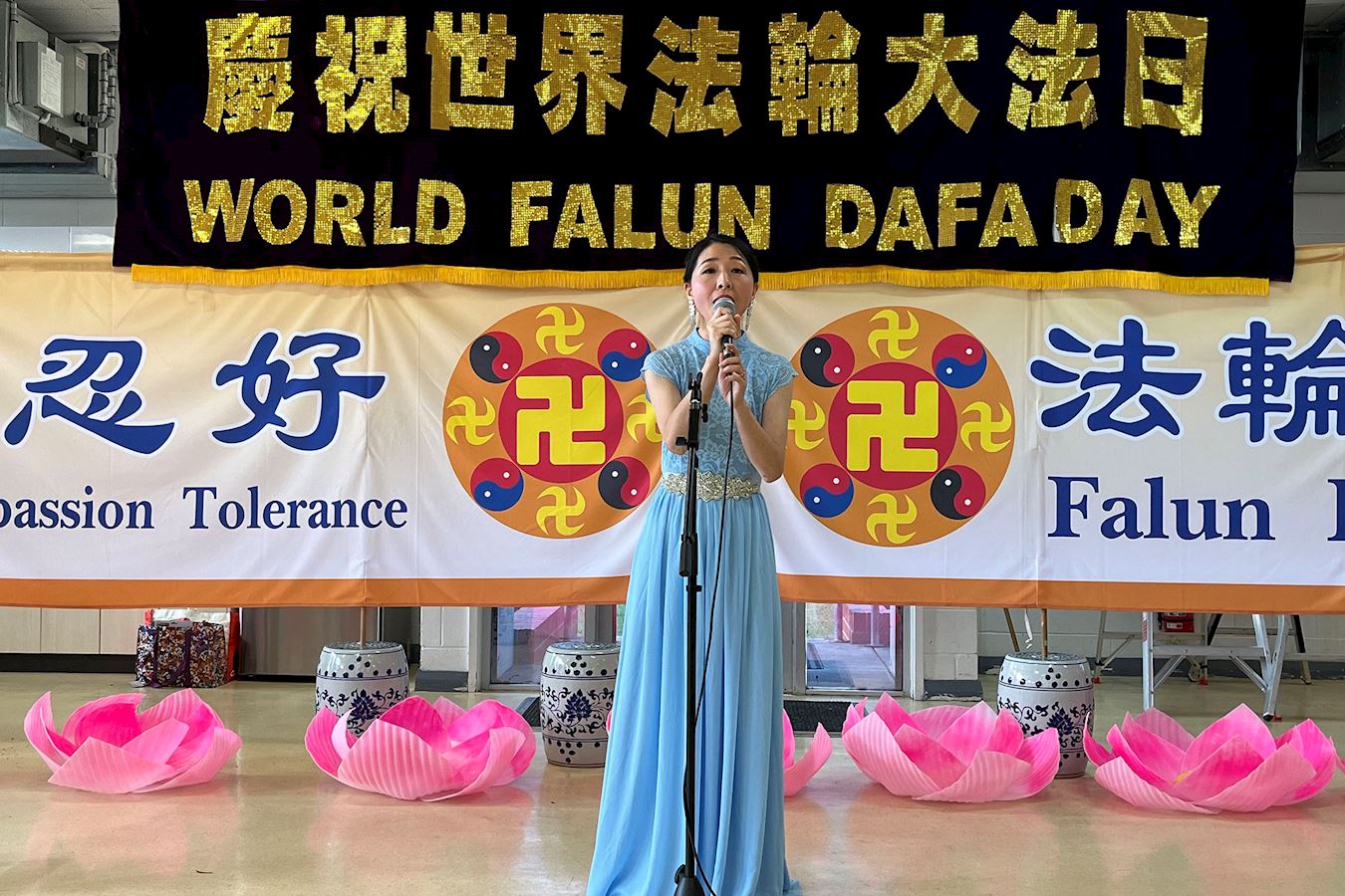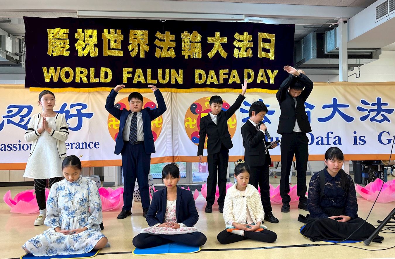 学员们向观众们展示了法轮功优美舒缓的五套功法,分享了修炼后的身心巨变和思想境界的升华,以表演文艺节目,向师尊李洪志大师表达了诚挚的感恩。