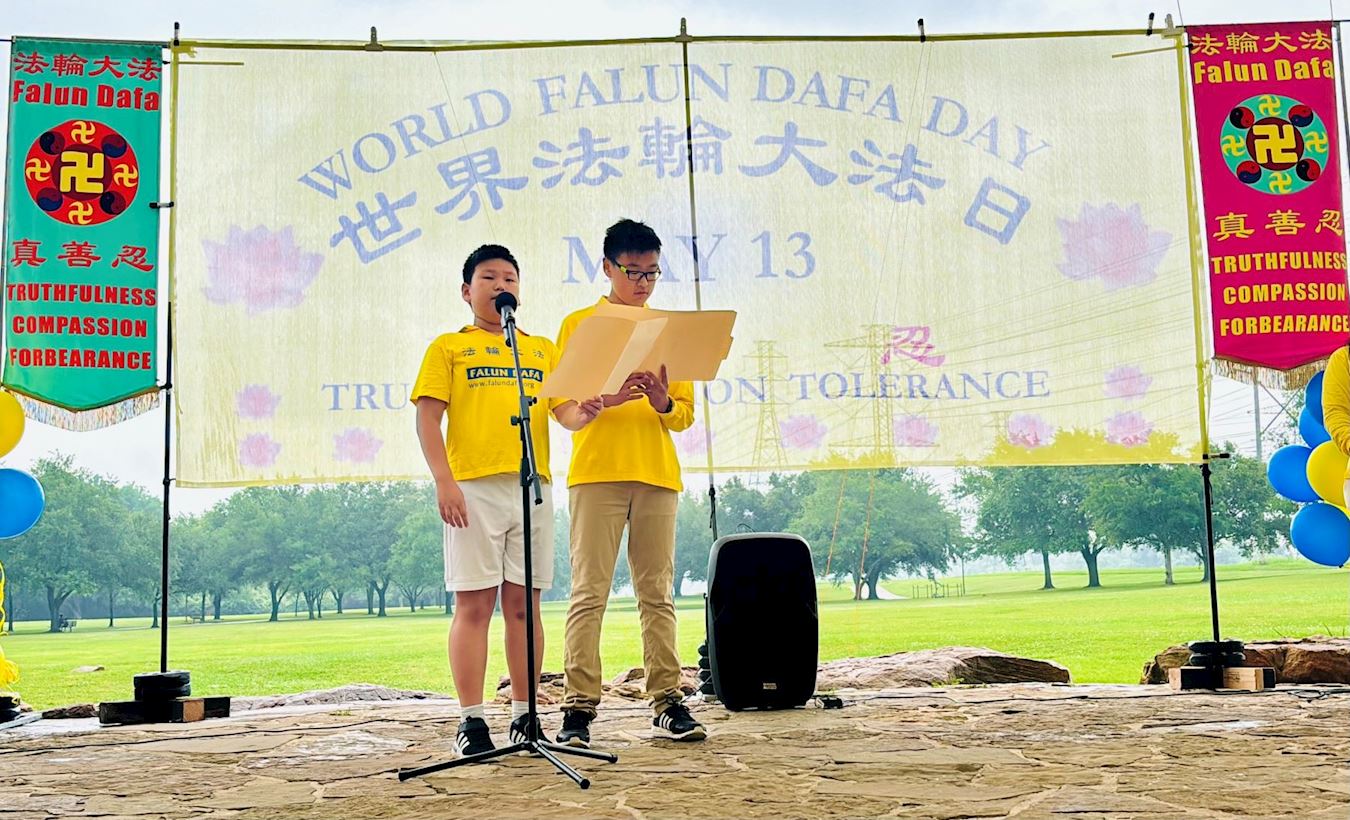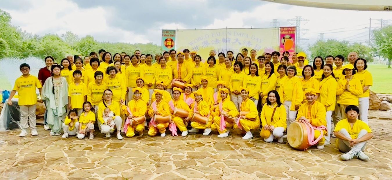 ![]() 图13:休斯顿法轮功学员齐聚休斯顿西南区的蚌溪公园,恭祝师尊生日快乐。 |