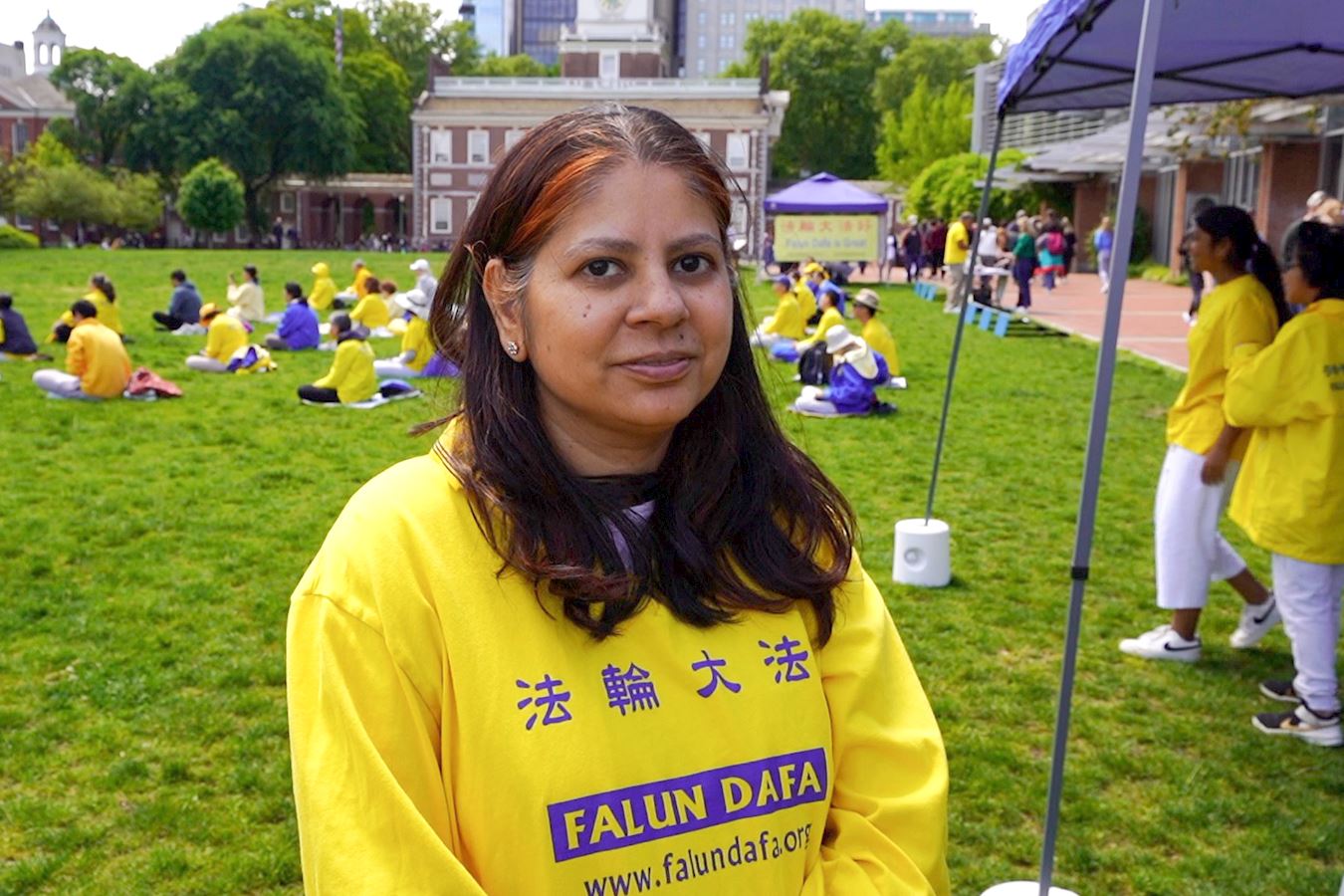 在庆祝活动上,最近开始修炼法轮大法的印度裔学员、财富500强公司副总裁阿姆·达莫达拉姆(Anu Damodaran)交流了她在短短几个月的修炼中,就感受到了修炼对她的家庭和工作所带来的益处。