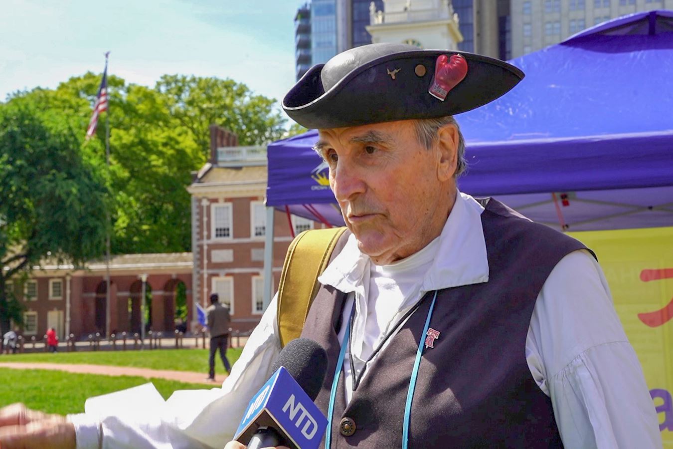 法轮功学员自中共迫害法轮功二十多年来,几乎每个周末都在自由钟独立广场炼功、讲真相。费城导游克拉克·德莱昂(Clark DeLeon)来到真相桌前表示,法轮功学员“正在承传这种自由”。他说:“我认为坚持‘真、善、忍’的理念非常重要。我认为他们在这里展示的修炼方式就体现了这一点(美国)有言论自由,有信仰的自由,有让人们了解自己立场的自由。费城在历史上就代表了这一点。”