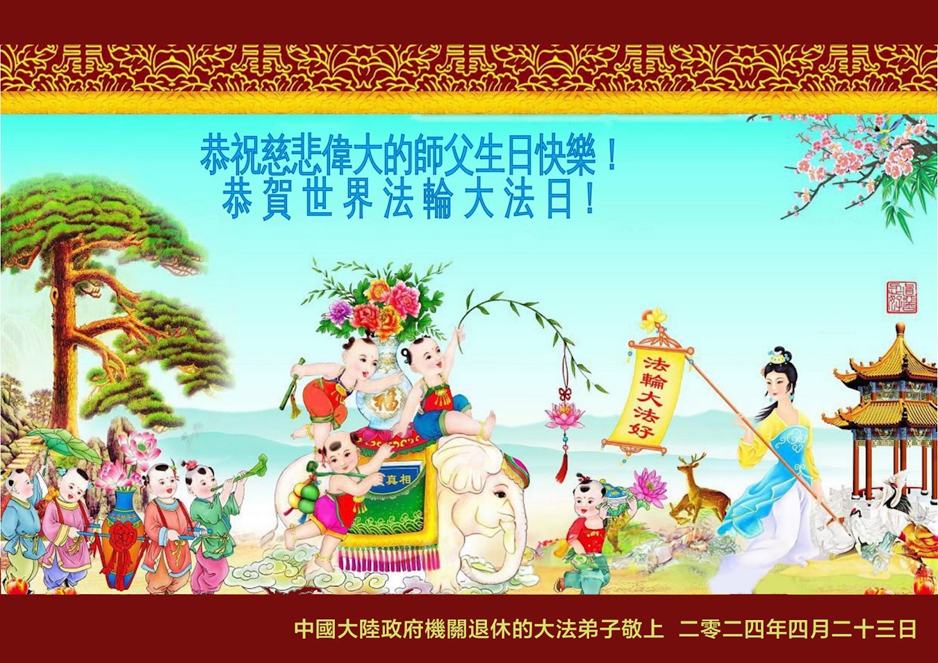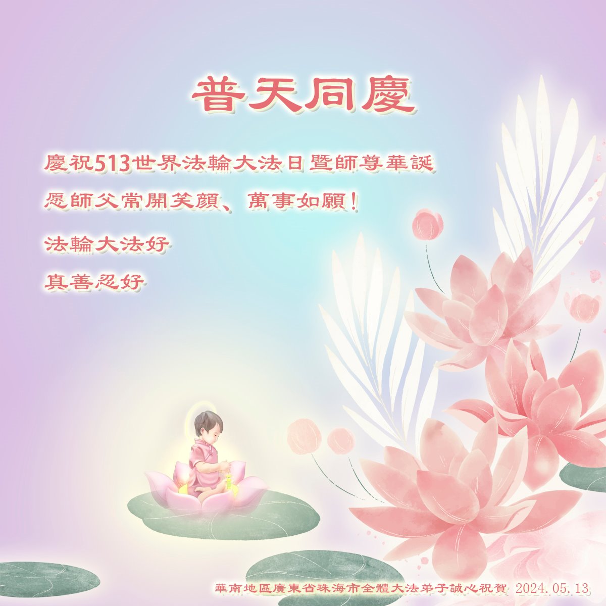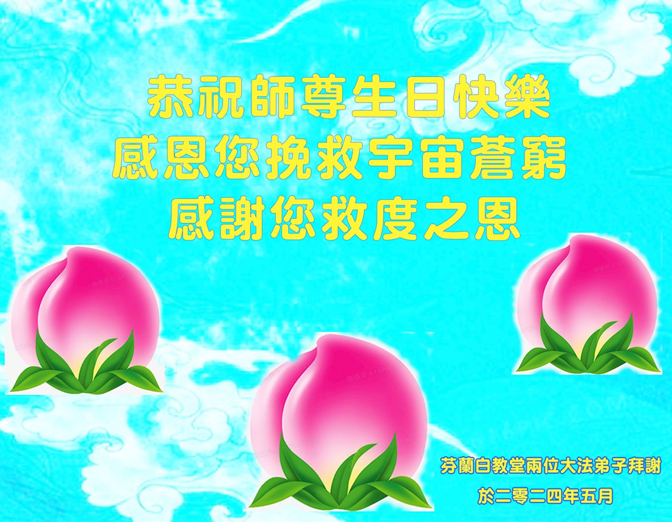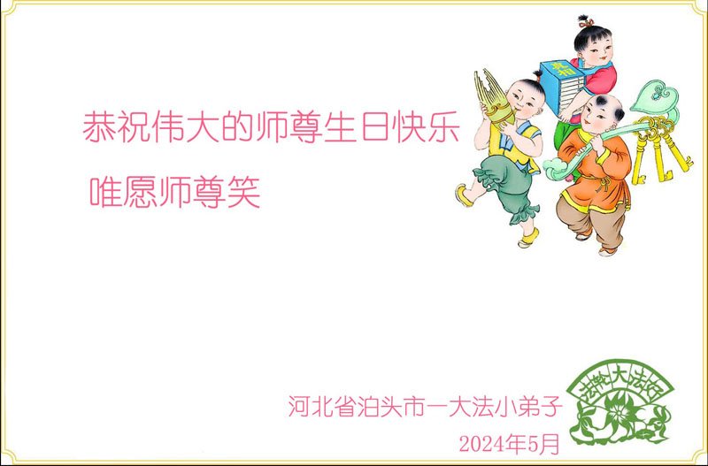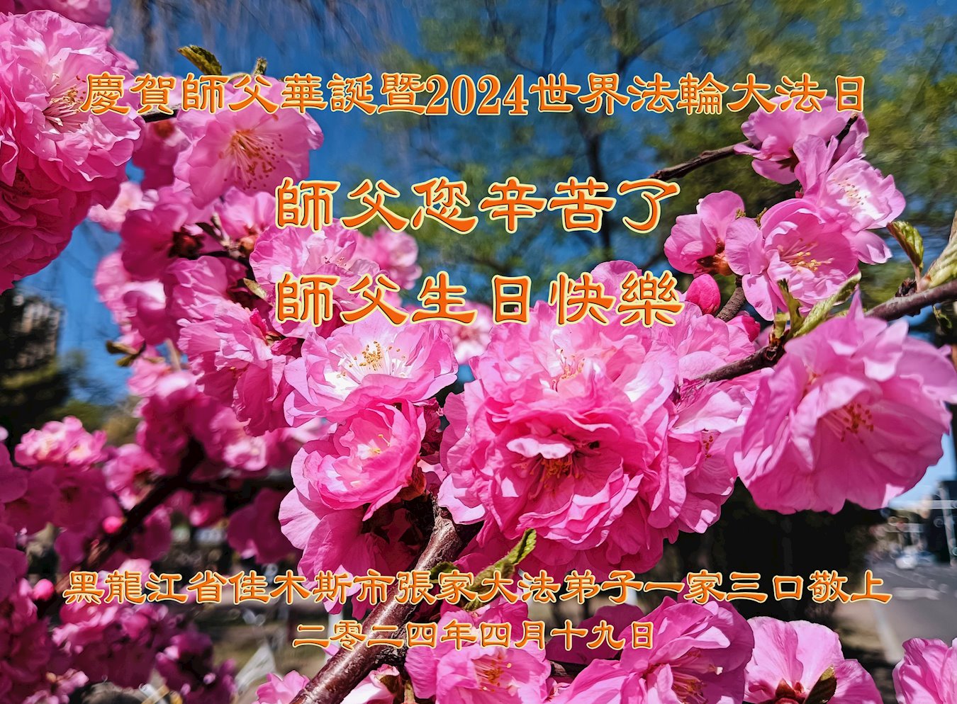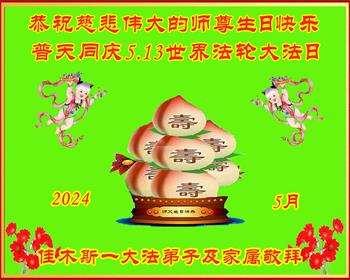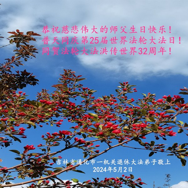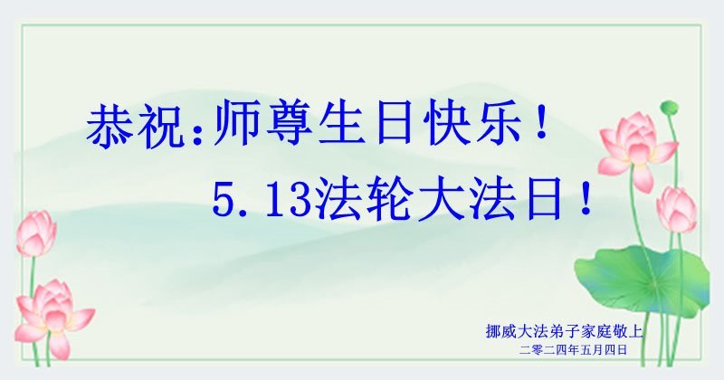 【明慧网二零二四年五月十四日】(明慧网记者综合报道)“五一三”是世界法轮大法日和师父华诞的神圣日子,沐浴在大法佛恩浩荡中的中国大陆大法弟子家庭、家族几代人,共同恭祝师尊七十三岁华诞!同庆法轮大法洪传三十二周年,感恩师尊慈悲救度!