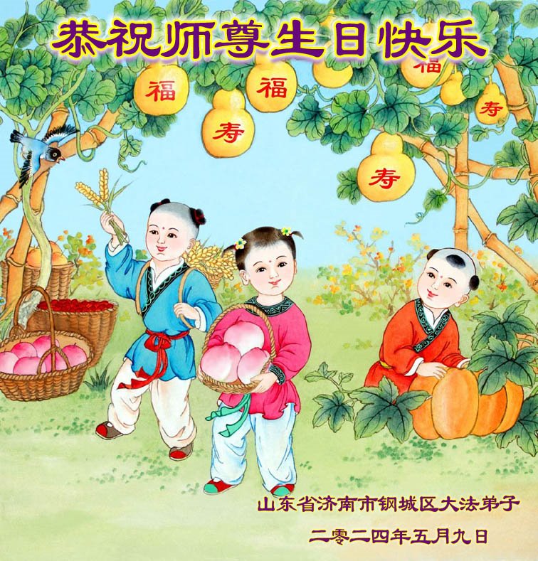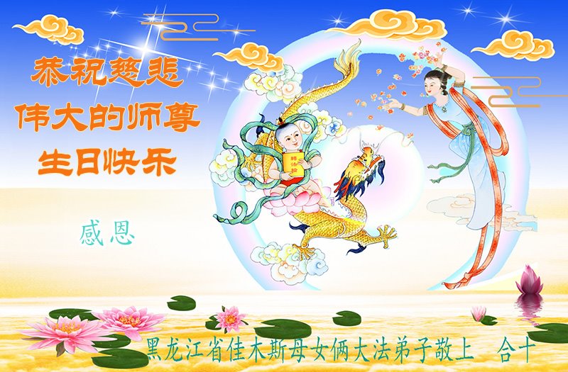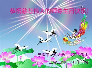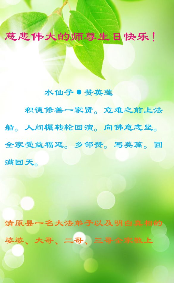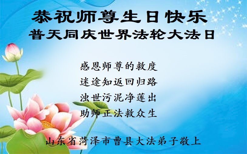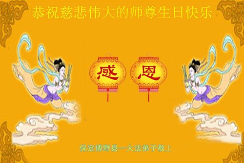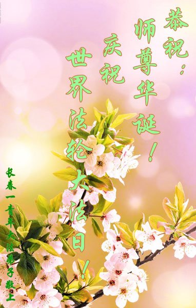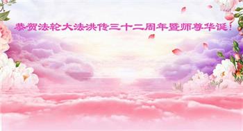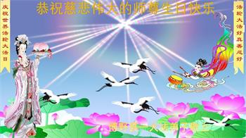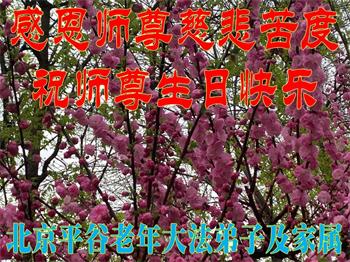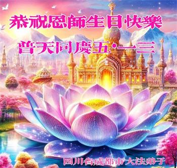 在这神圣的日子里,弟子怀着无比感恩的心情,恭祝师尊生日快乐!师尊您辛苦了!您为弟子超尽了心,吃尽了苦。弟子无以回报,只有做好三件事,多学法,救度更多的众生,完成使命,愿师尊多一份欣慰,少一份操劳,惟愿师尊笑!下面一名八十一岁的女大法弟子用一首诗来表达对师尊的思念!