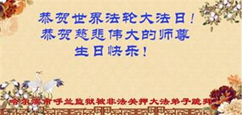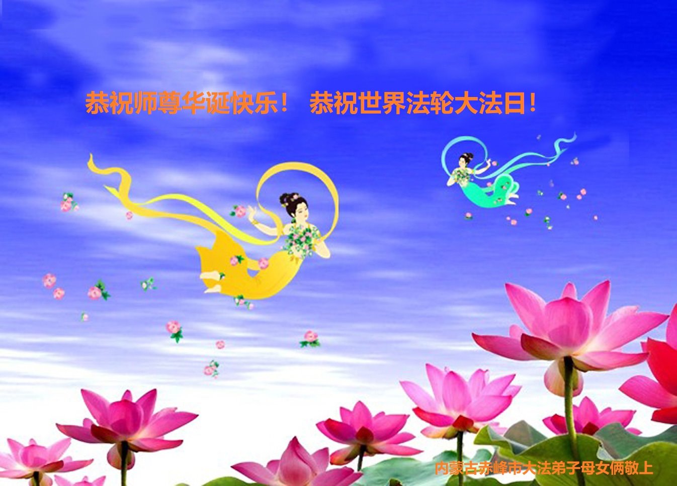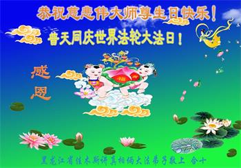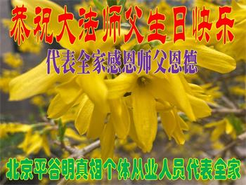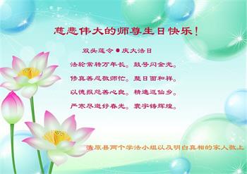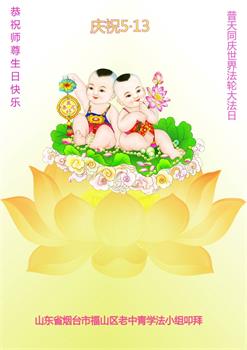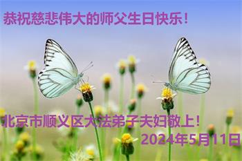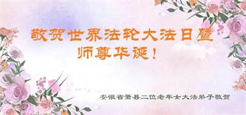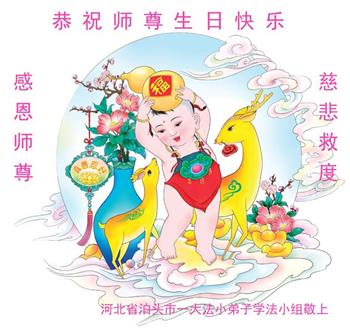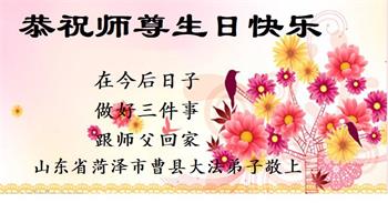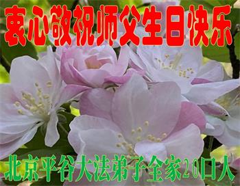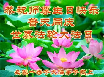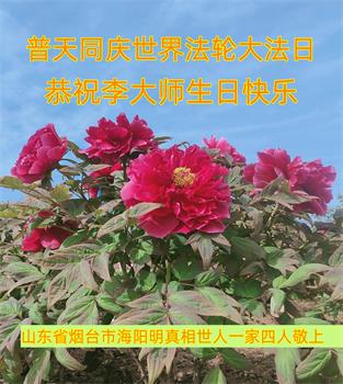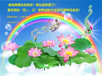 在师父华诞和世界法轮大法日即将到来这个双喜临门的日子,我们大法弟子及家人满怀喜悦迎接这个伟大的节日。我们有多少话想对师父说,虽然我们知道师父时刻在我们身边,我们还是想念师父,盼师父早日归来。
