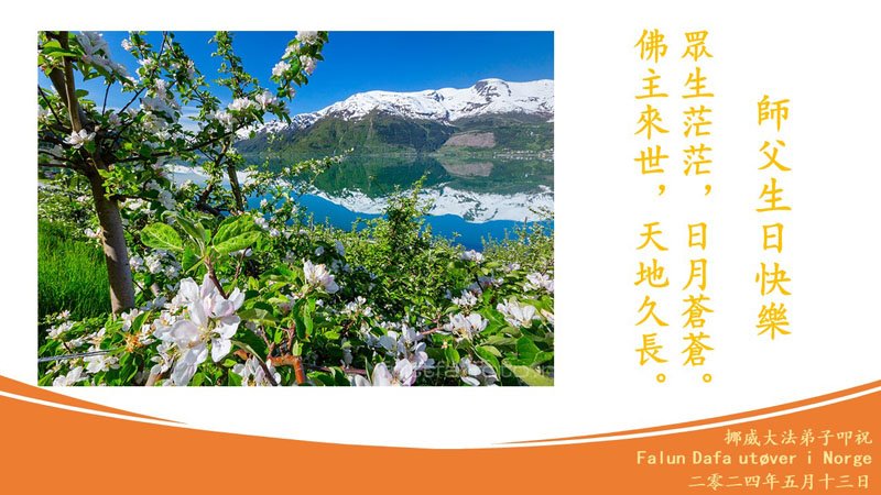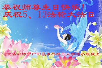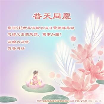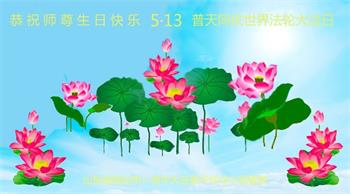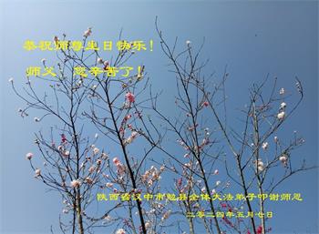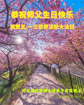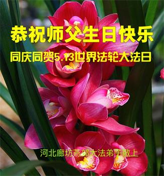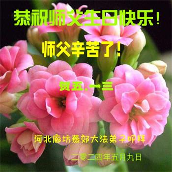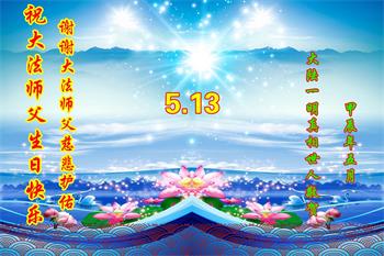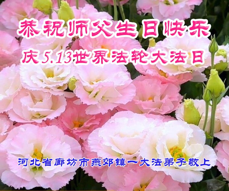 “五一三”是世界法轮大法日和师父华诞的大喜日子。全世界亿万大法弟子和明真相的众生翘首企盼这一天的到来,万物复苏,花卉争艳!我们夫妻同修怀着无比激动喜悦的心情衷心祝愿师父生日快乐!