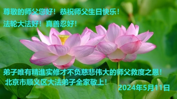 值此师尊华诞暨世界法轮大法日来临之际,弟子率全家叩拜师尊!