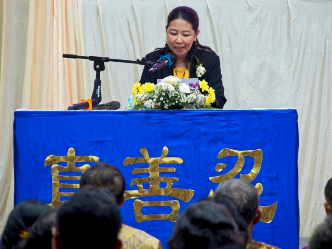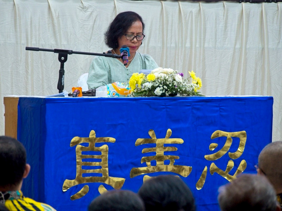 ![]() 图2~5:二零二四年五月四日,学员在印度尼西亚修炼心得交流会上发言。 |