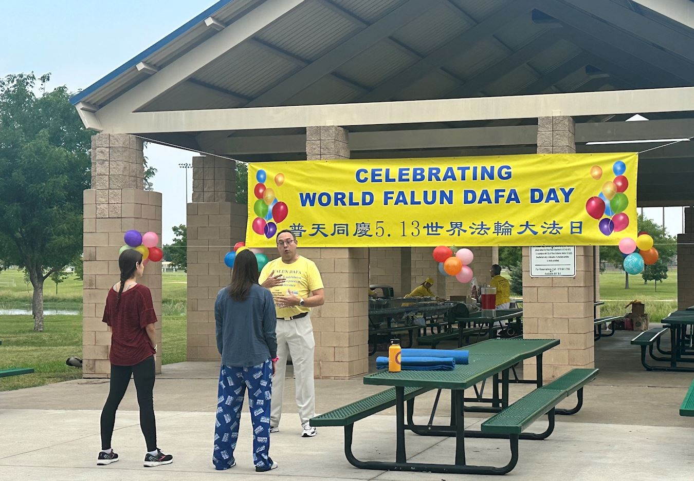 法轮大法于一九九二年五月十三日由法轮功创始人李洪志先生公开向社会传出,现在全世界有一亿多人,一百多个国家、地区有法轮大法的修炼者。法轮大法于一九九六年传入达拉斯地区,现在,法轮功学员不仅有华裔,还有西人、越南裔、西班牙裔和印第安等不同种族的人。
