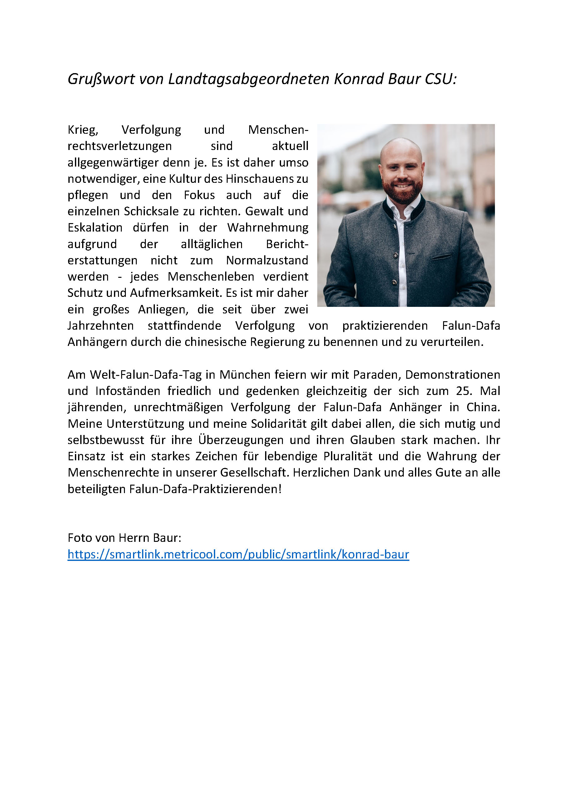 巴伐利亚州议会基社盟(CSU)议员康拉德・鲍尔(Konrad Baur)致词译文: