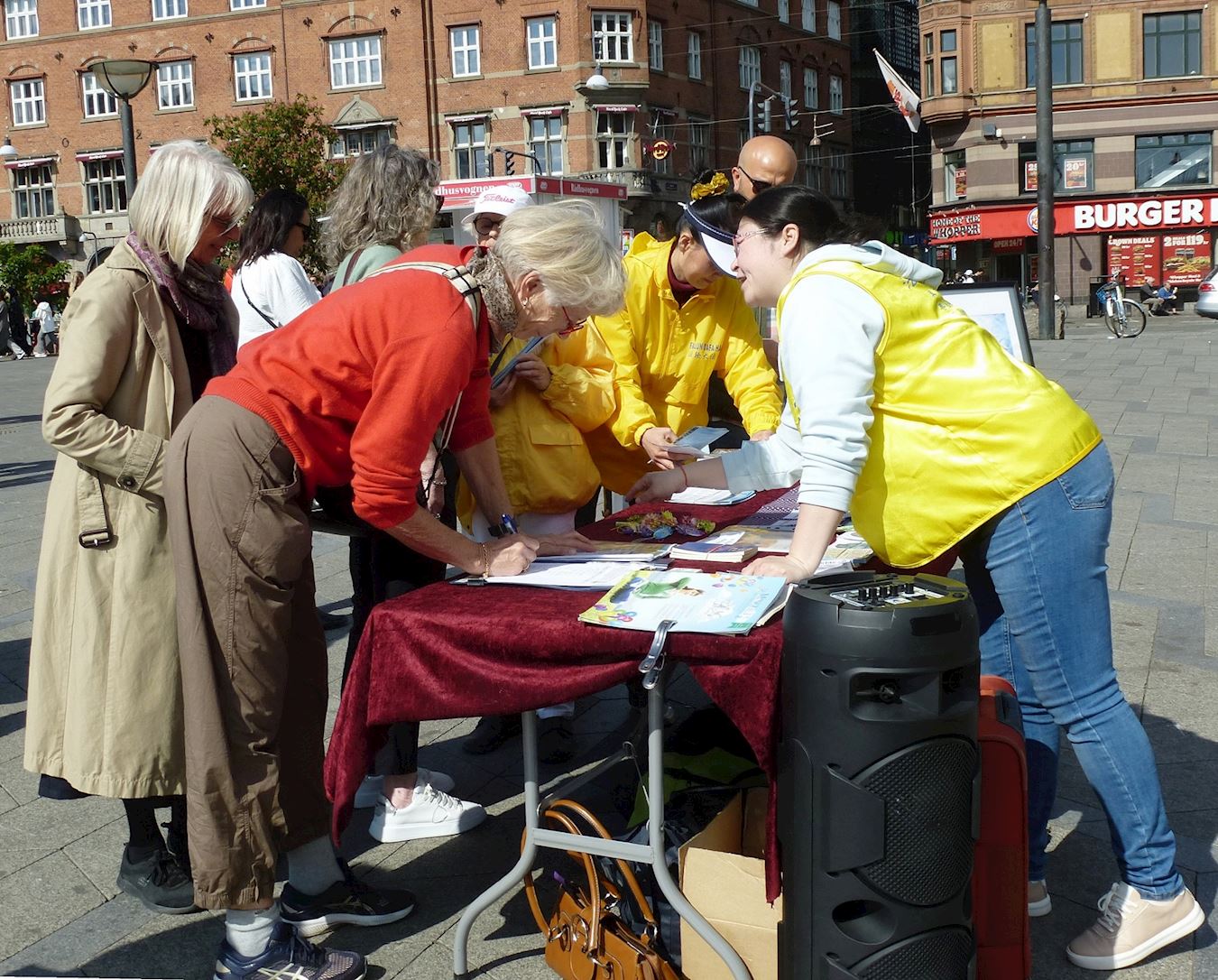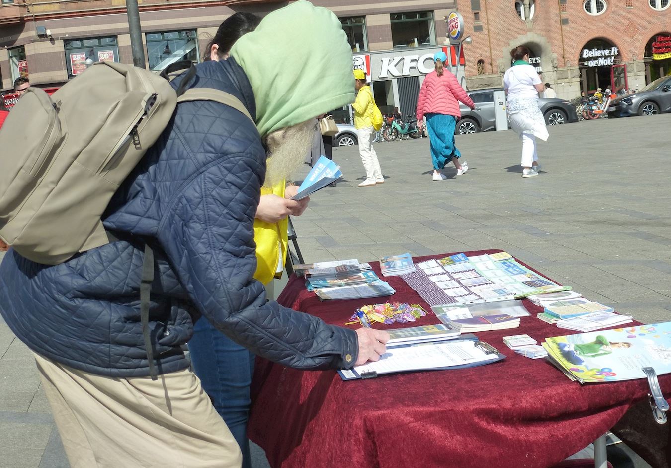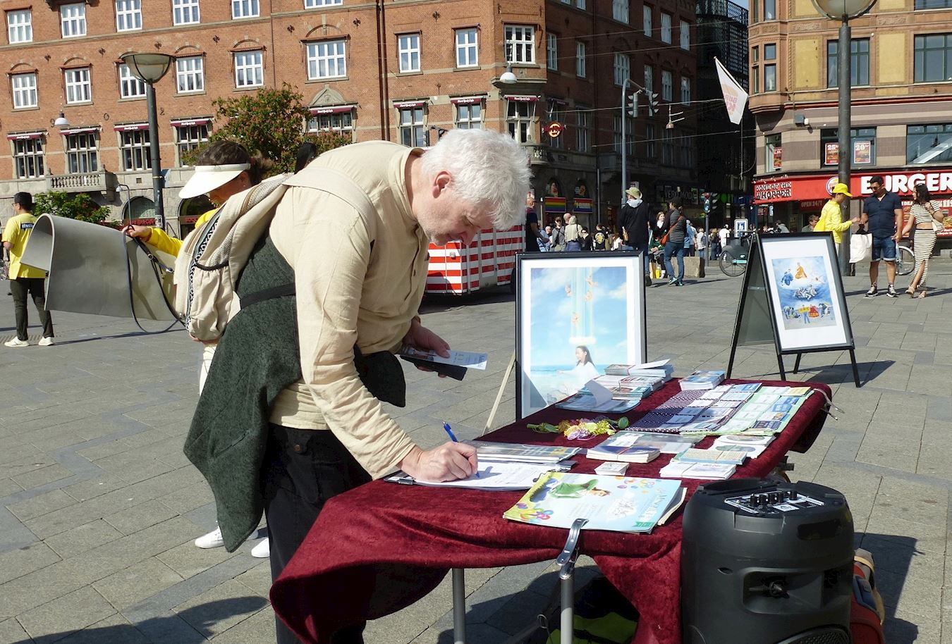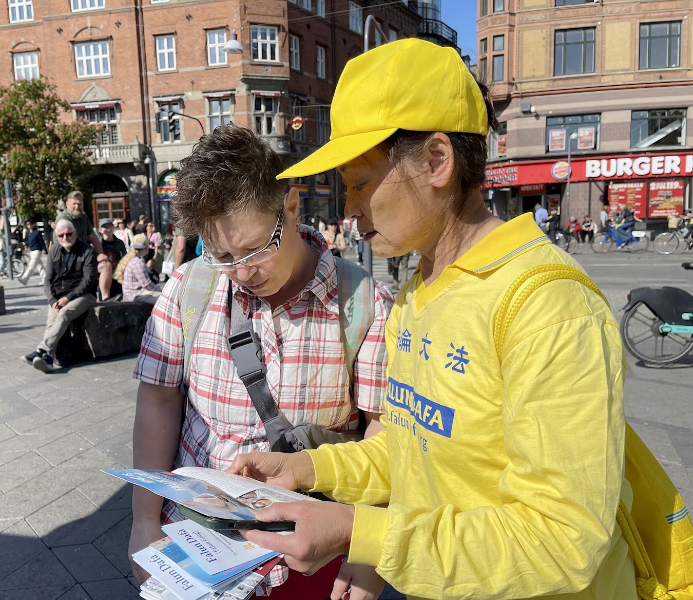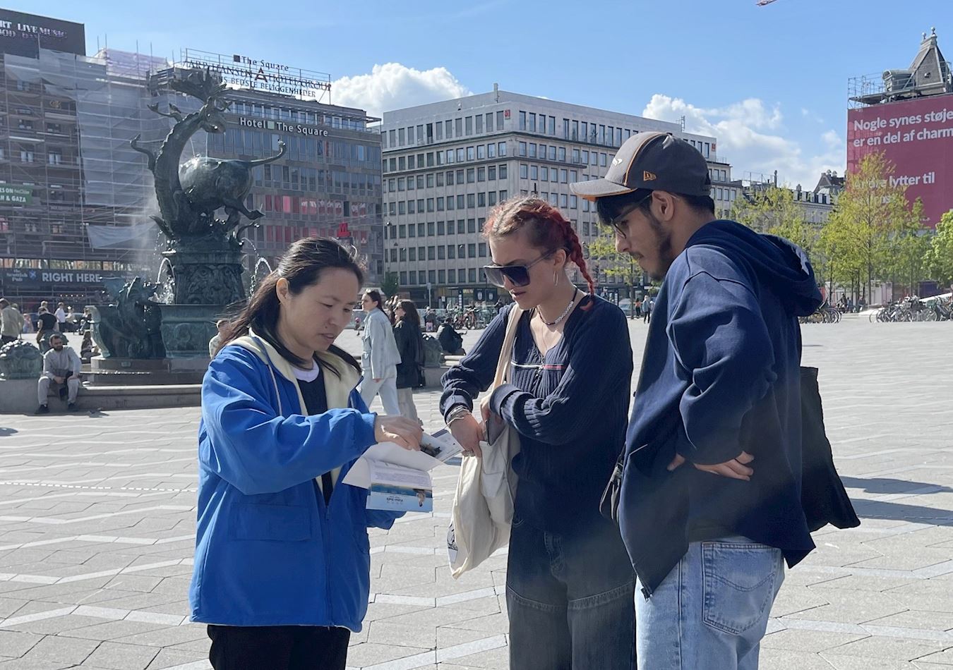 住在瑞典第二大城市歌德堡的年轻人,周末来到哥本哈根度假。他走向活动现场,听完学员告诉他法轮功的真相后,他问道:修炼法轮功能不能改善身体状况?他因为儿时打疫苗产生的副作用,睡眠非常差,工作和学习都不能够专心,精力集中不起来,造成紧张焦虑。学员告诉他,人修炼之后能够净化心灵,改善身体状况,缓解紧张焦虑,使内心平静,心情愉悦。他表示非常感兴趣。