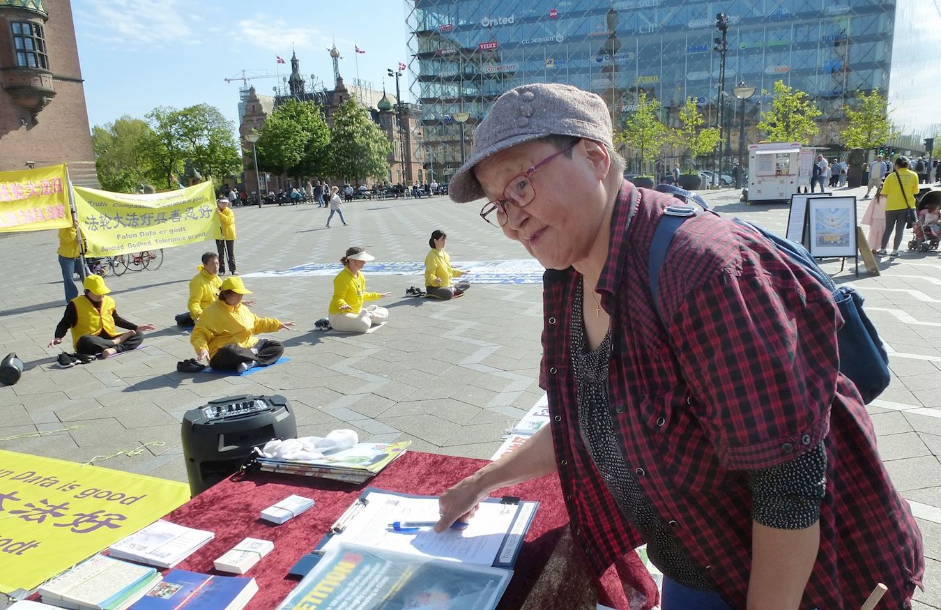 马尔达(Marda),是一位来自丹麦自治领域格陵兰岛的居民,她聆听完学员讲述法轮功的真相后,主动拿起笔在征签表上签名。马尔达表示,她很想读一读传单上写的法轮功的两本书《法轮功》与《转法轮》,学员告诉她,到法轮功的网页上,就可以免费下载这两本书。