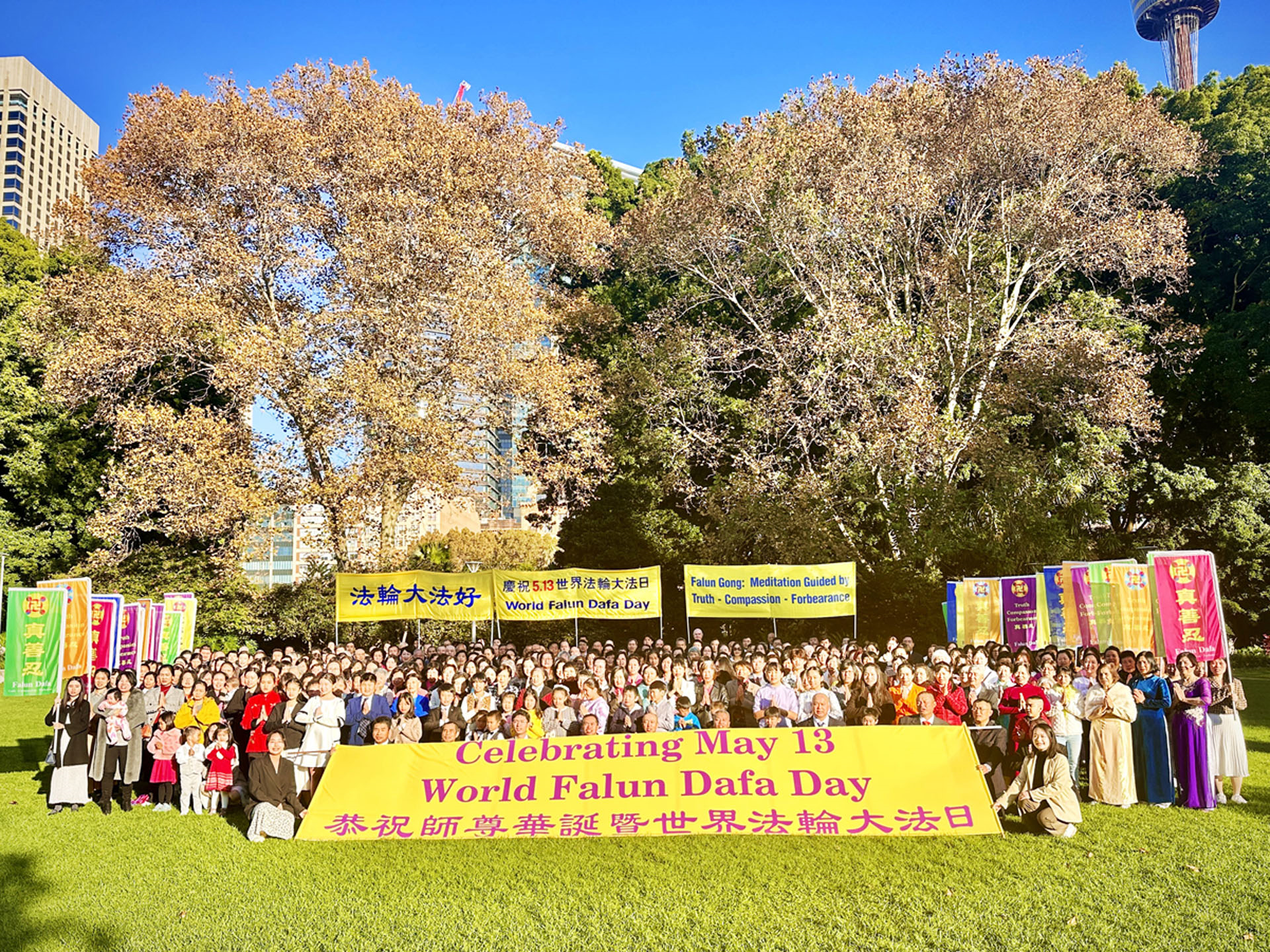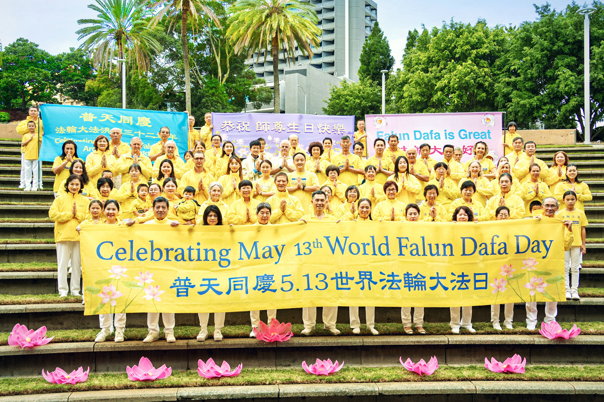 ![]() 图2:悉尼法轮功学员恭祝慈悲伟大的师尊生日快乐! |
