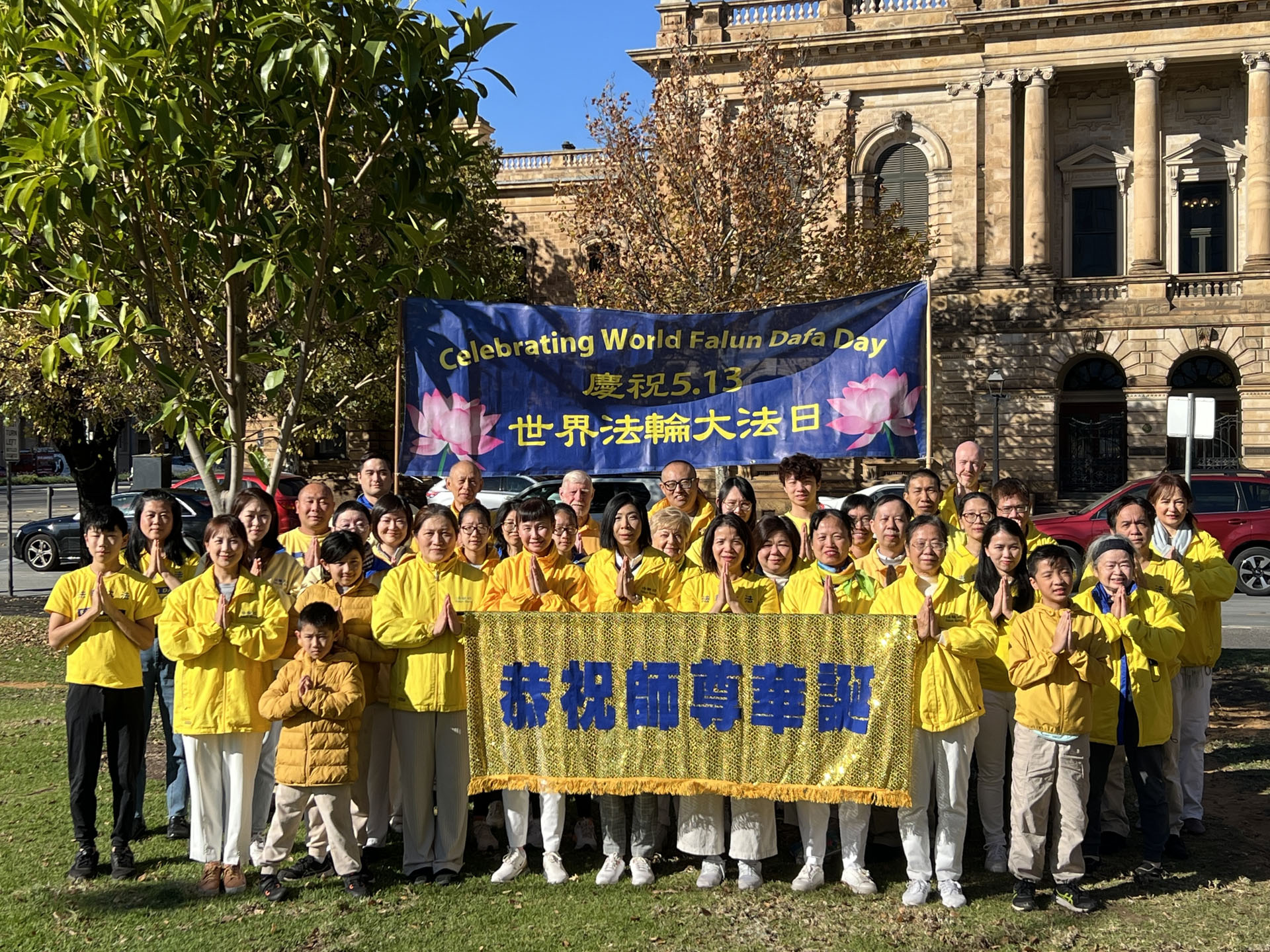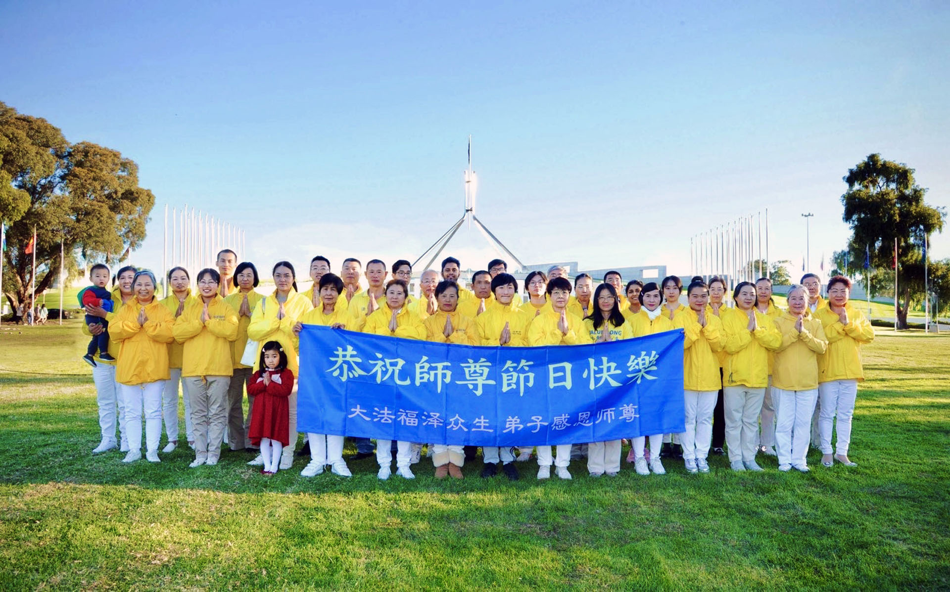 ![]() 图7:堪培拉法轮功学员恭祝慈悲伟大的师尊生日快乐! |