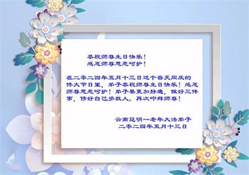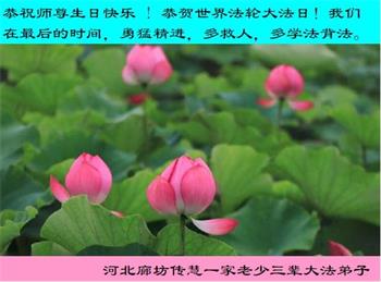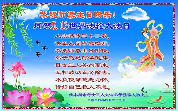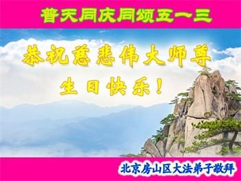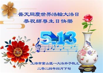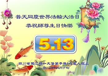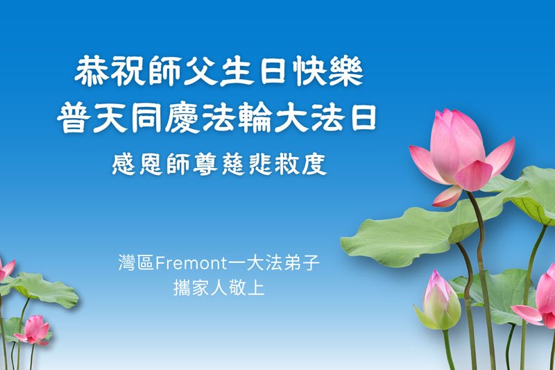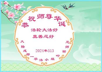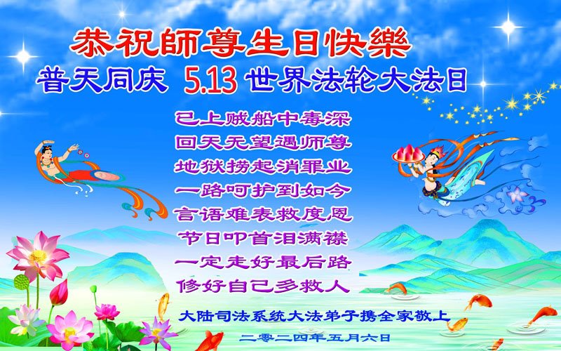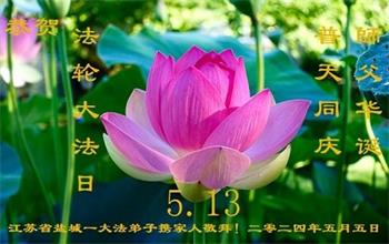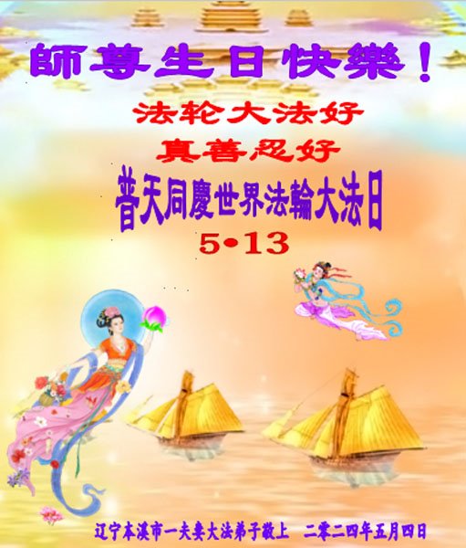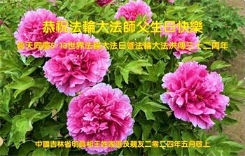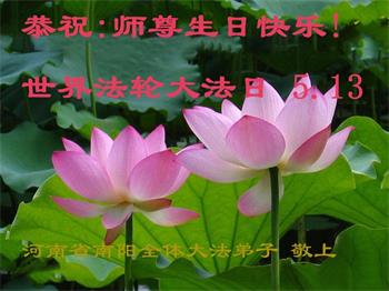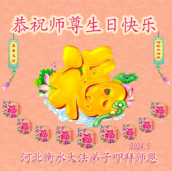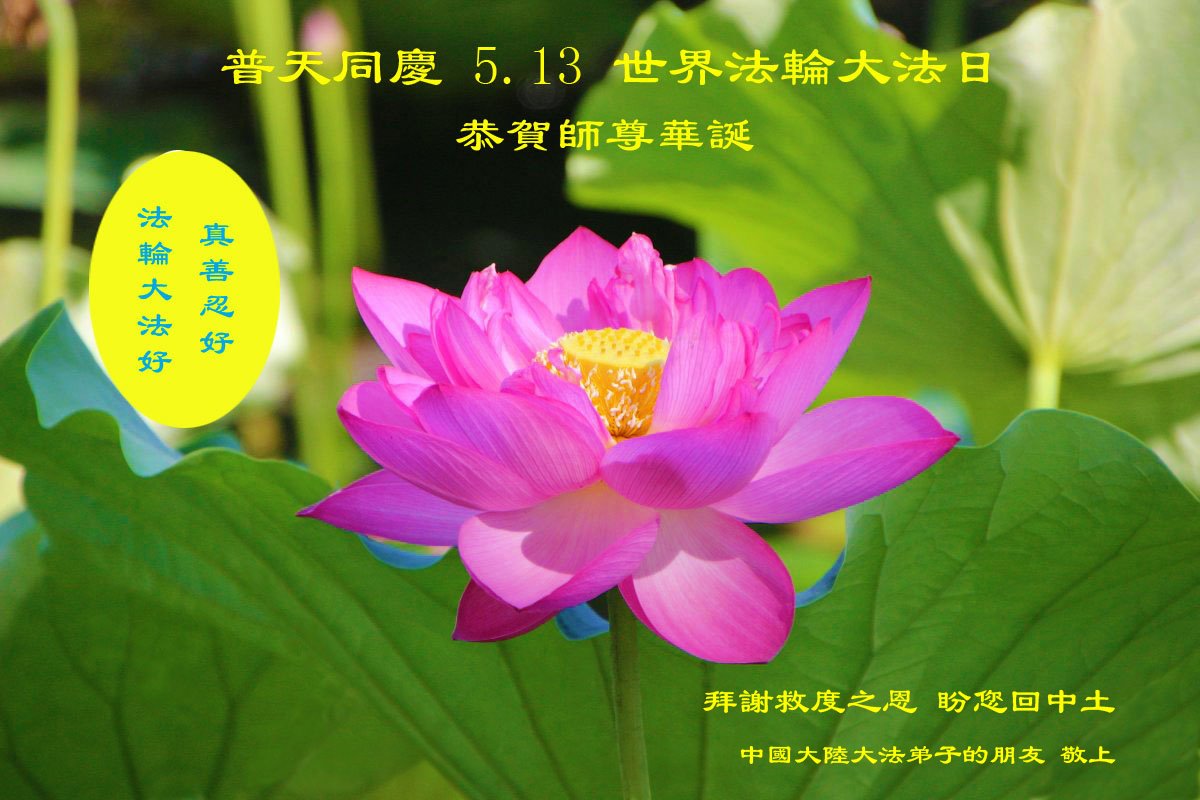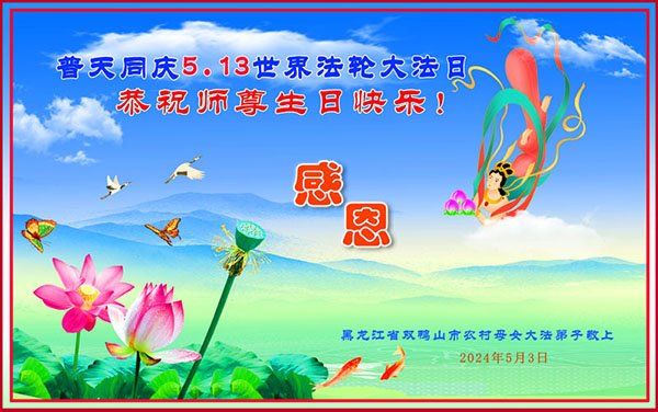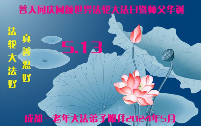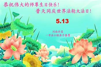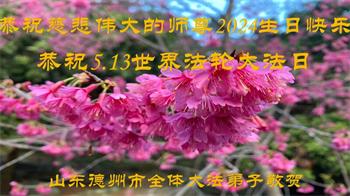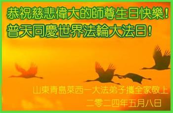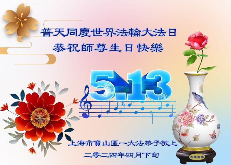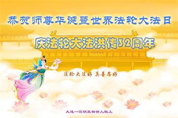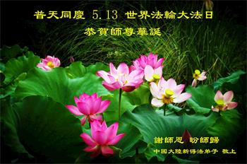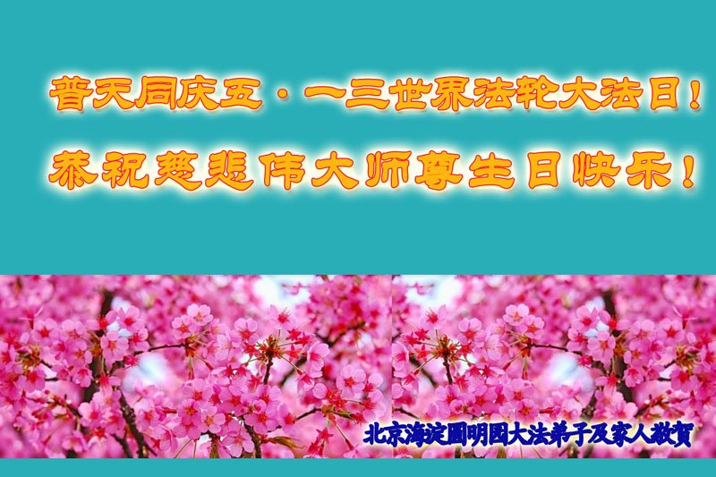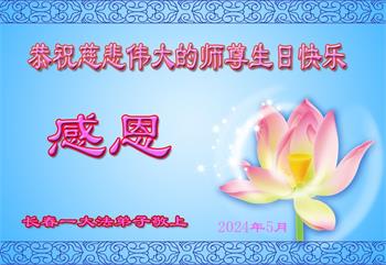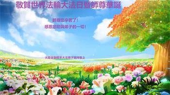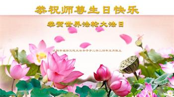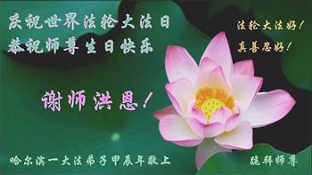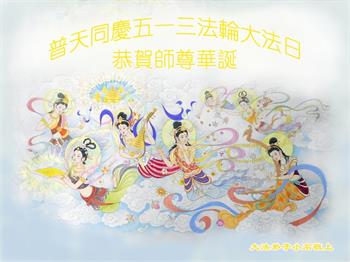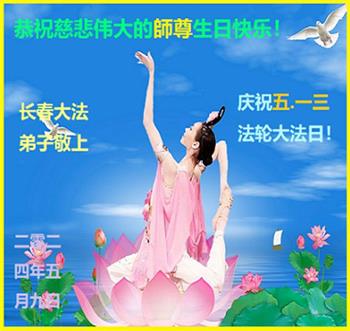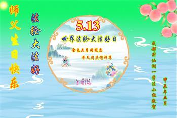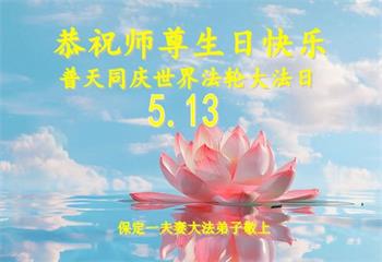 今年的五∙一三是第二十五届世界法轮大法日暨师尊华诞!弟子衷心恭祝师尊生日快乐!普天同祝同颂世界法轮大法日!感恩师尊慈悲普度!感恩师尊传法三十二周年,您为弟子及穹宇众生得救呕心沥血的操劳!弟子们唯有多学法修好自己,做好三件事,不辜负师尊的慈悲救度!