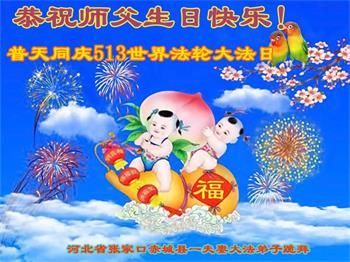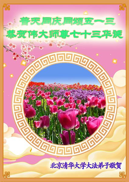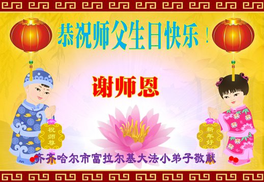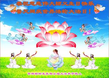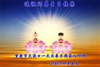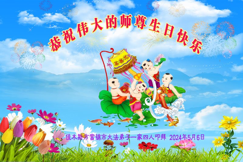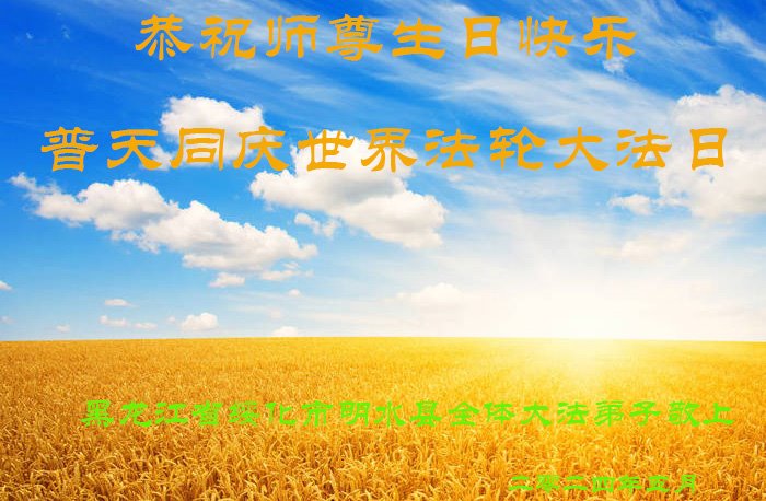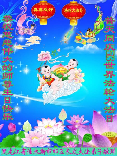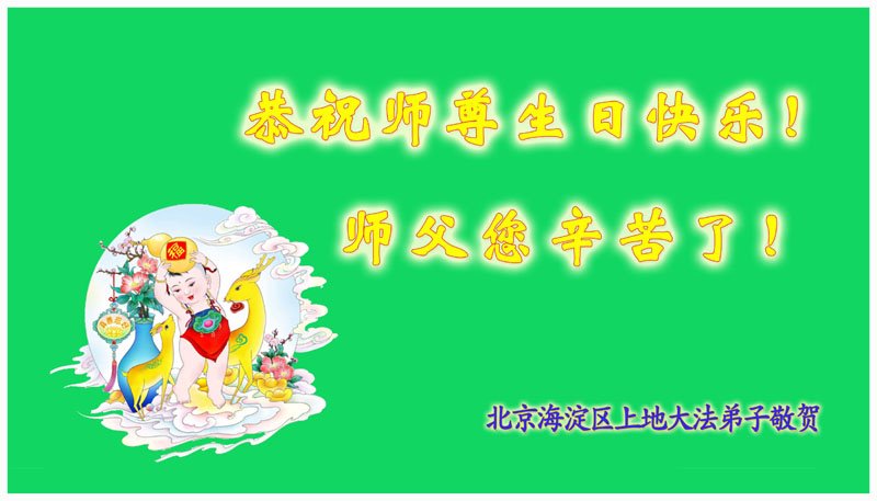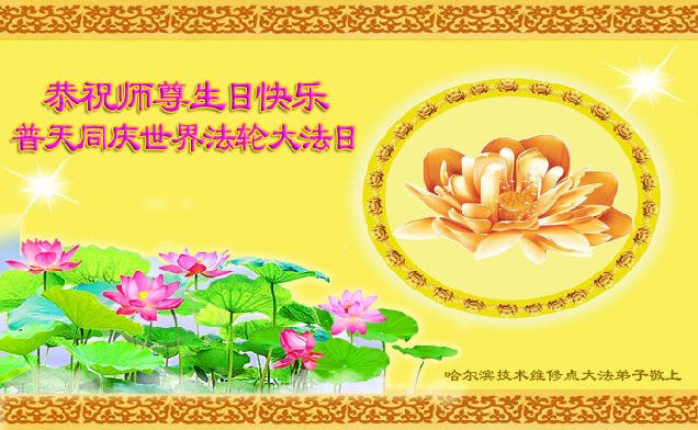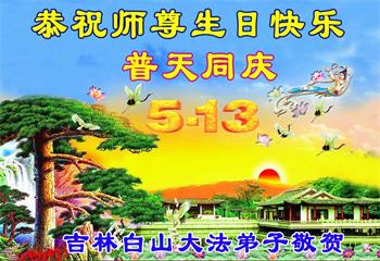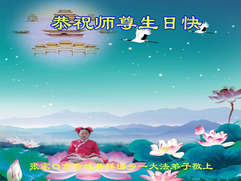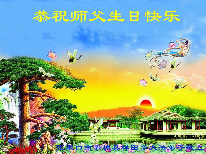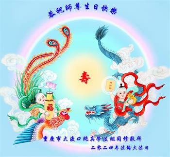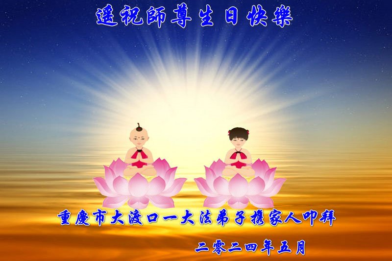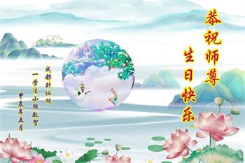 在普天同庆的日子里,我怀着虔诚的心感恩师父,这是无法用人类语言来表达的心境。恭祝师父生日快乐!祝贺大法洪传三十二周年!