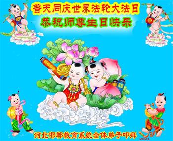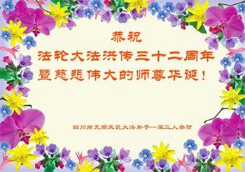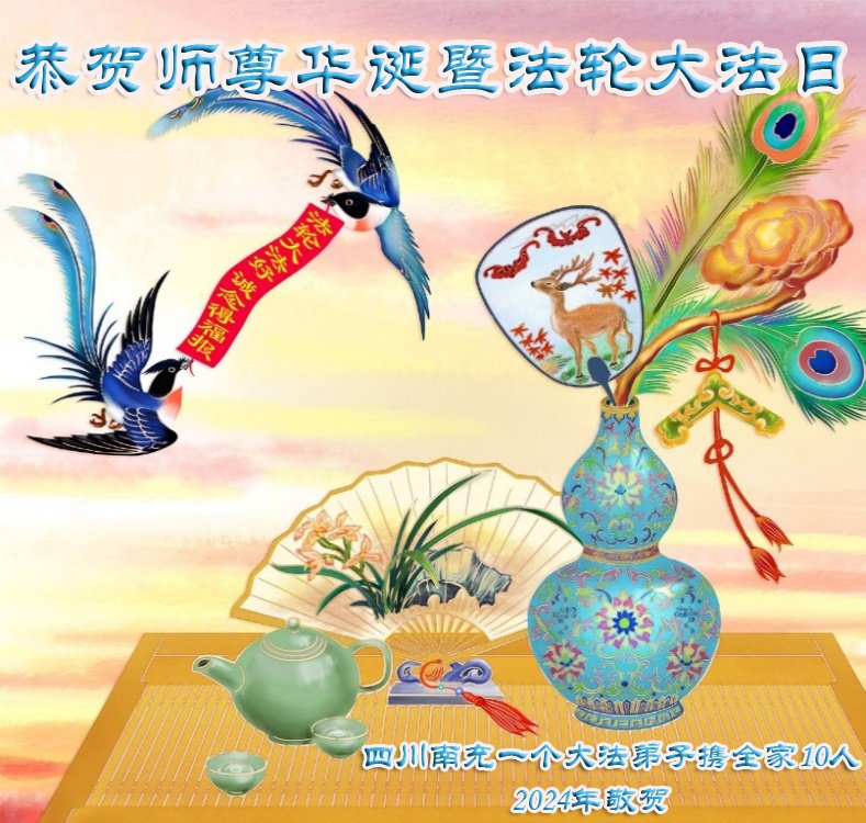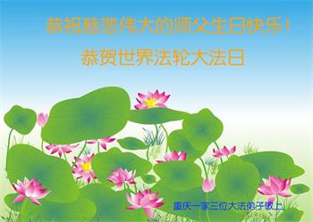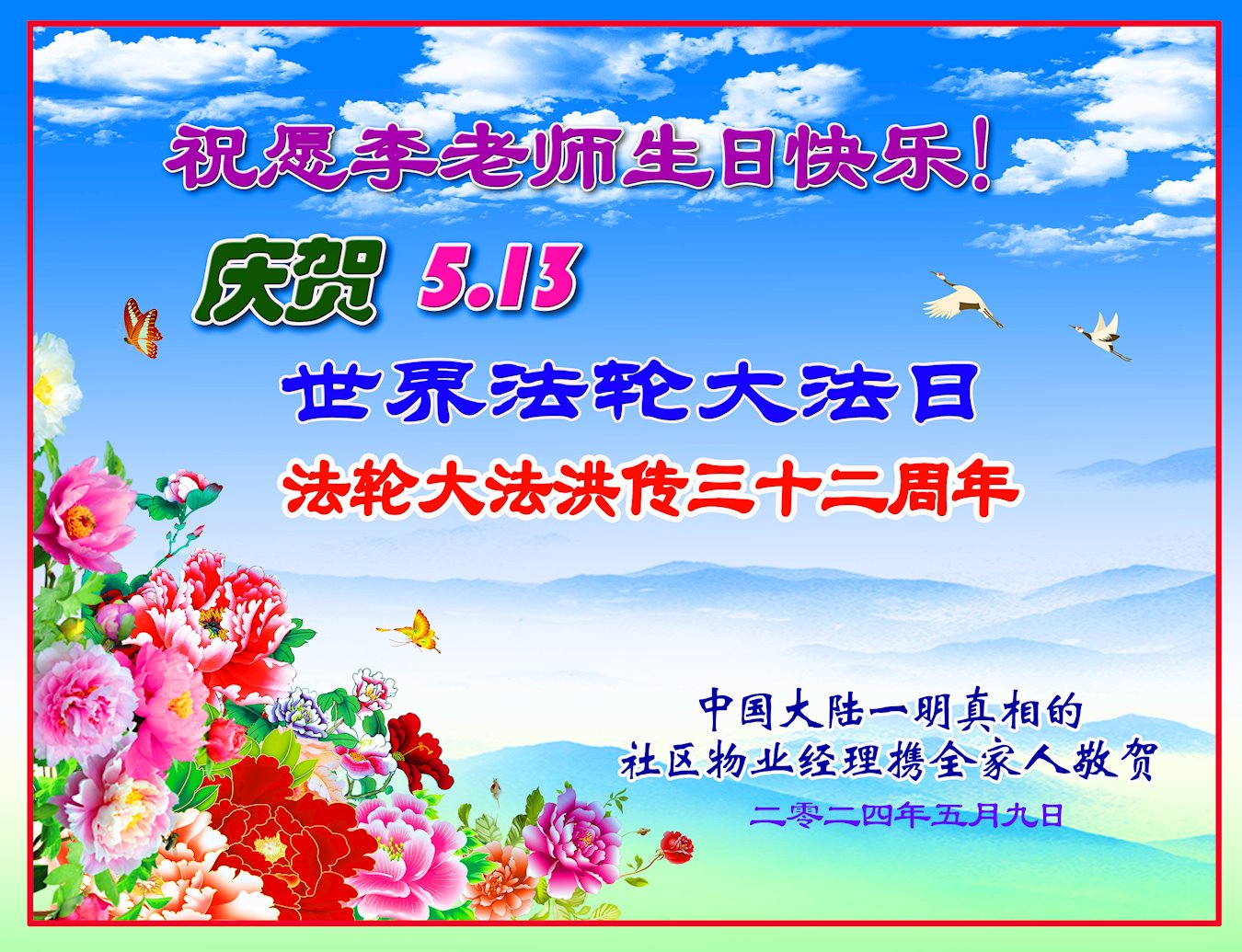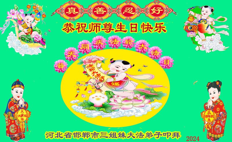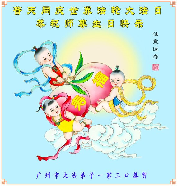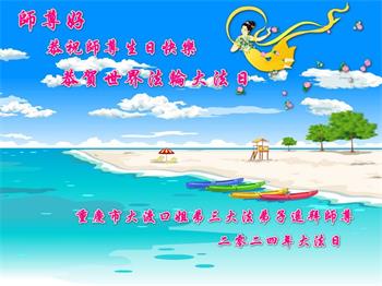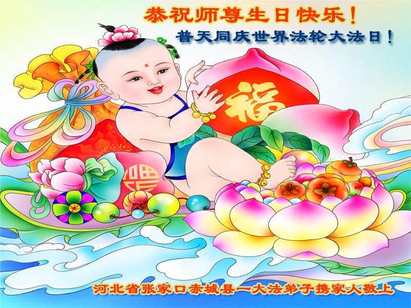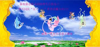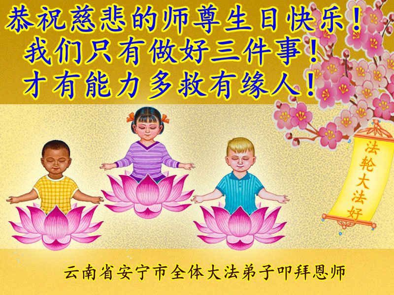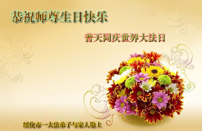 在普天同庆的日子里,我怀着虔诚的心感恩师父,这是无法用人类语言来表达的心境。恭祝师父生日快乐!祝贺大法洪传三十二周年!