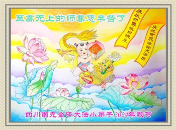 山东省诸城市一青年大法弟子写道:“慈悲伟大的师父好!我九岁时就跟随着妈妈学大法。在邪恶疯狂时期,我和妈妈一起配合发资料、写标语、挂横幅。在妈妈多次被非法关押期间,我没有动摇信念。我非常珍惜师父赐予的‘正法时期大法弟子’的神圣称号。我生逢在师父传宇宙大法时期,万分感谢师父的伟大赐予,这是我生生世世的期盼,这是我来到人世的夙愿。”