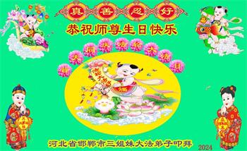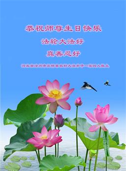 我奶奶爷爷都修炼法轮功。我从小目睹了大法弟子的高尚品德,处处为别人着想的高风亮节。同时也看到了邪*党-对大法弟子的无端迫害。那时邪*党-人员经常到家里骚扰,绑架我奶奶,我吓得抱着奶奶的腿大哭,幼小的心灵受到了极大的伤害,从此我恨透了某某党。所以我从上学开始,坚决不申请加入邪*党-的党、团组织。我虽然还没有走入修炼,但只要遇到困难,我就诚念“法轮大法好,真善忍好”九字真言,就能得到师父的保护,困难很快就迎刃而解。感恩师父的慈悲救度!恭祝师父生日快乐!
