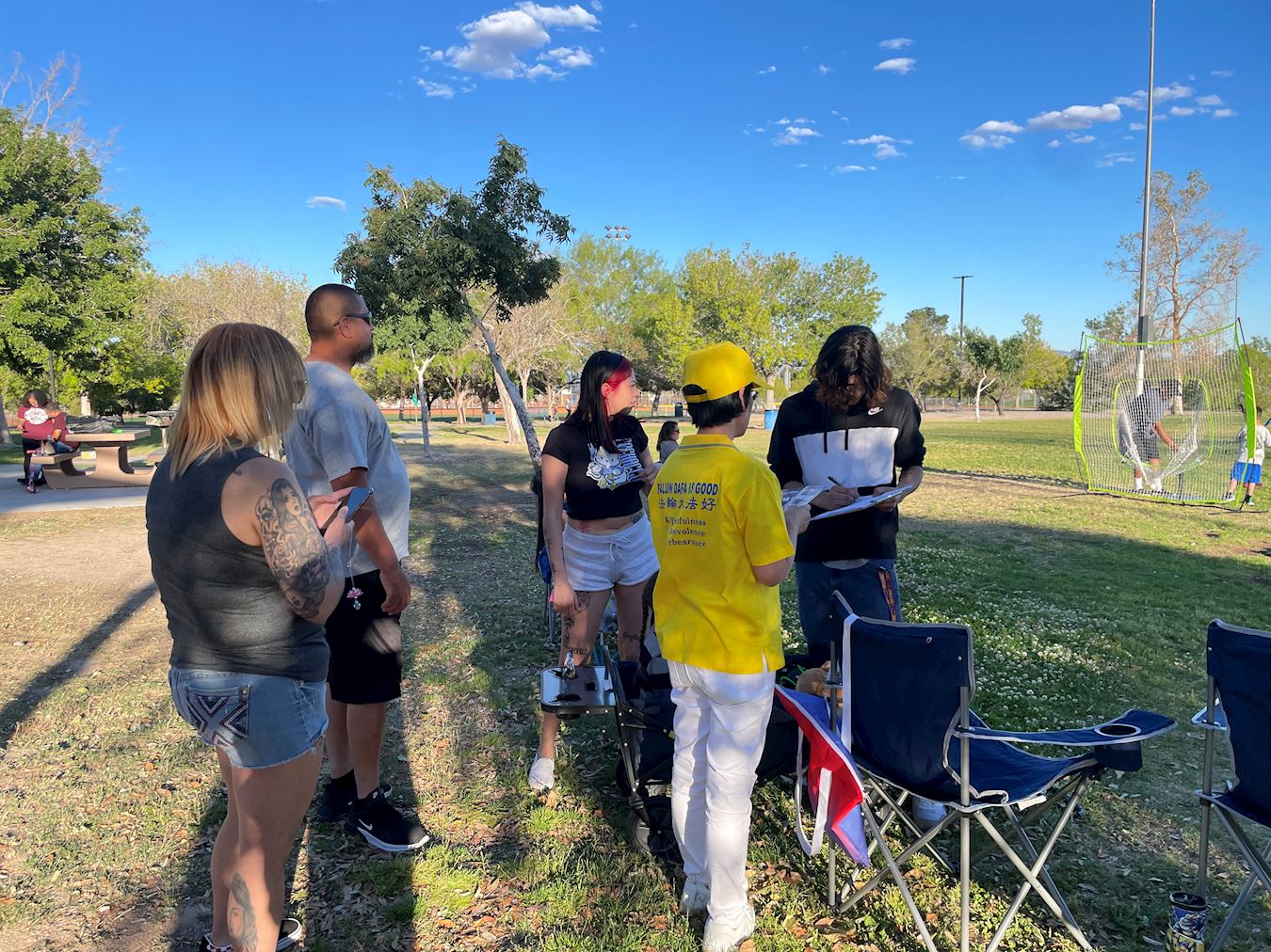 之后,学员们进行了五套功法的演炼。宁静祥和的炼功场面,吸引了在公园里游玩民众的目光,纷纷驻足观看,向学员了解真相后,纷纷在签字表上签下自己的名字,以表对大法的支持。