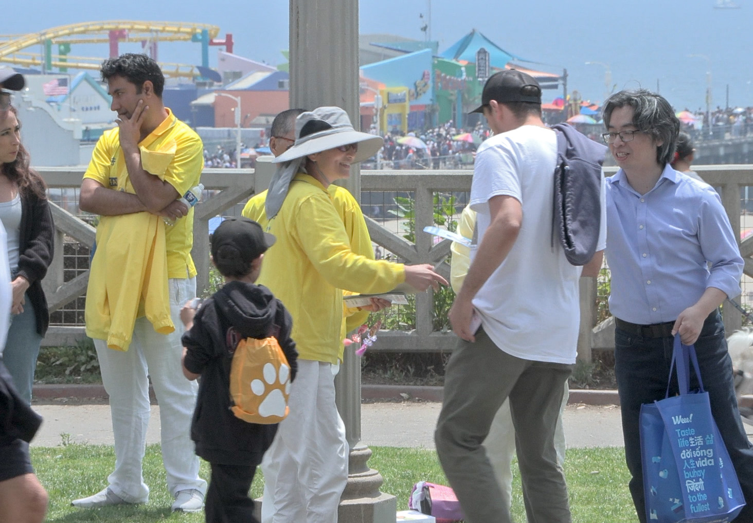 有一位从大陆东北到美国不久的女士说:“我刚刚路过这里看到你们举办歌舞表演,因为有事没看多久,我现在专门回来看。因为在中国不让炼法轮功,我想知道是怎么回事,法轮功是什么?”法轮功学员马上给她一些有关的真相资料,并为她讲了法轮功真相,她非常愿意接受。