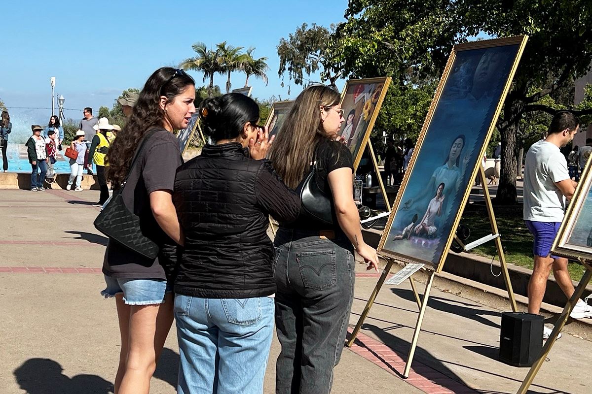 还有一位女士在看到《震撼》这个画作时对法轮功学员说:“这就是真相的力量,震撼了那些在黑暗中的人。那些有黑暗心理的人害怕真相之光。”