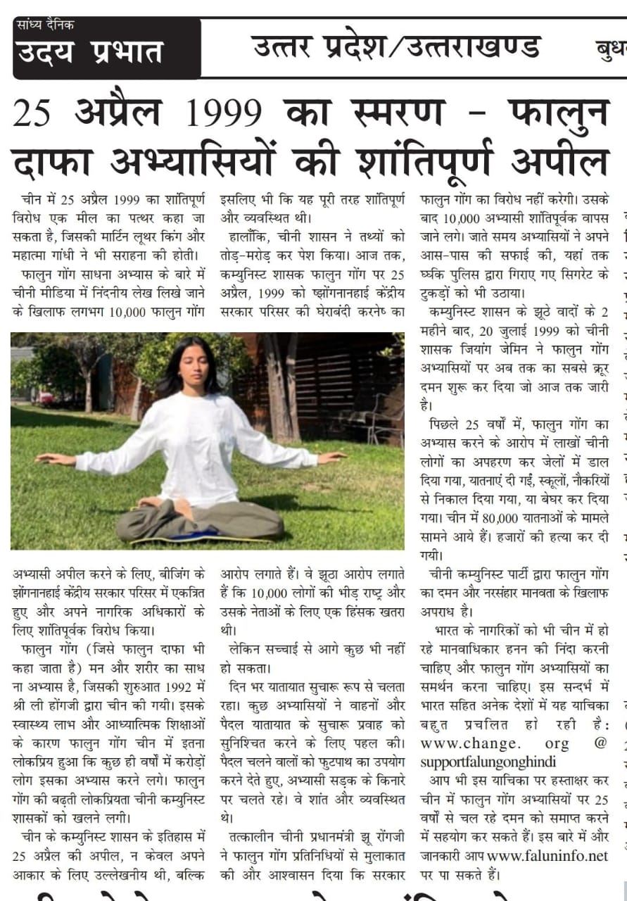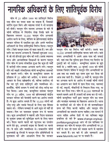 其中一些媒体过去也曾报道有关法轮大法因其修身养性、祛病健身的益处而广受赞誉;以及修炼法轮大法的印度名人的修炼故事。在四·二五和平上访二十五周年纪念日的前一周,印度多家媒体报道了这一历史性事件。这些媒体包括如下报纸和新闻门户网站。