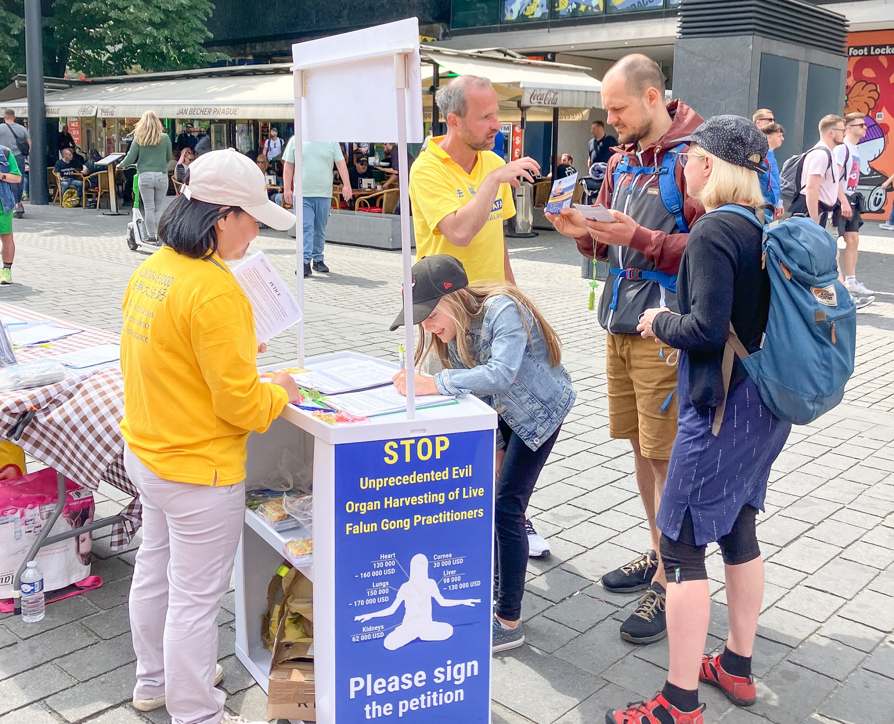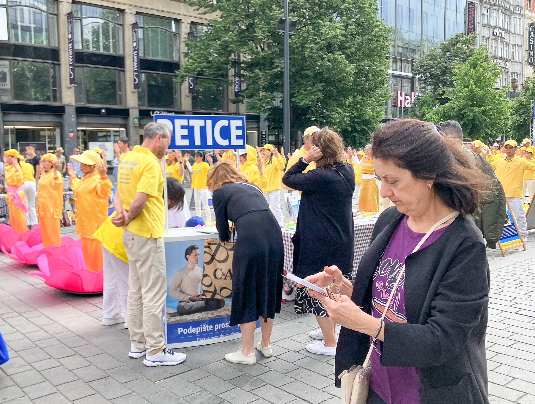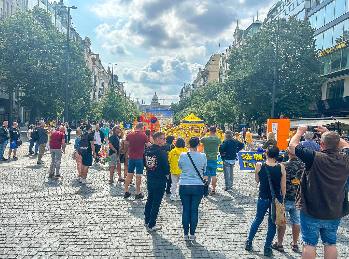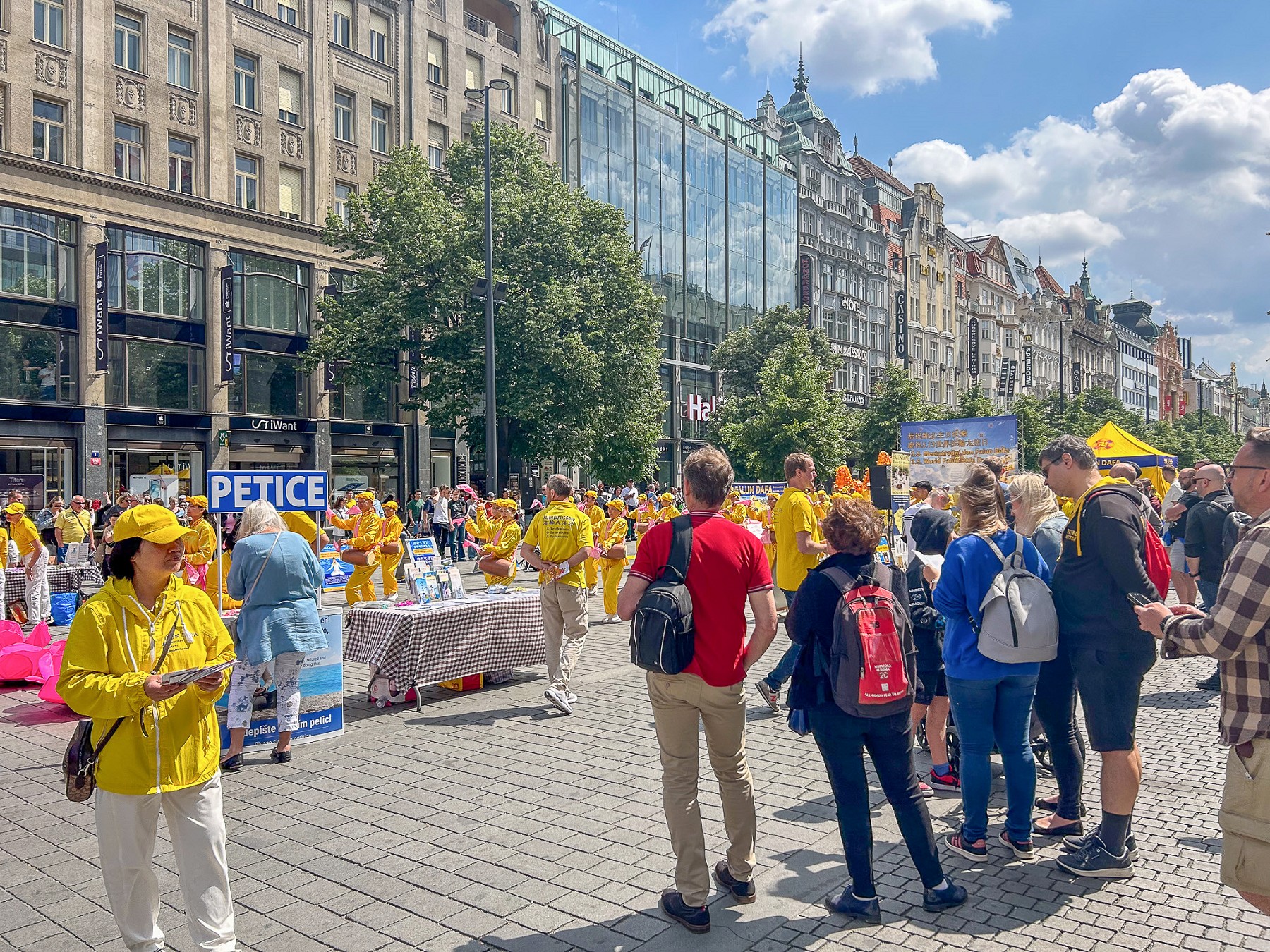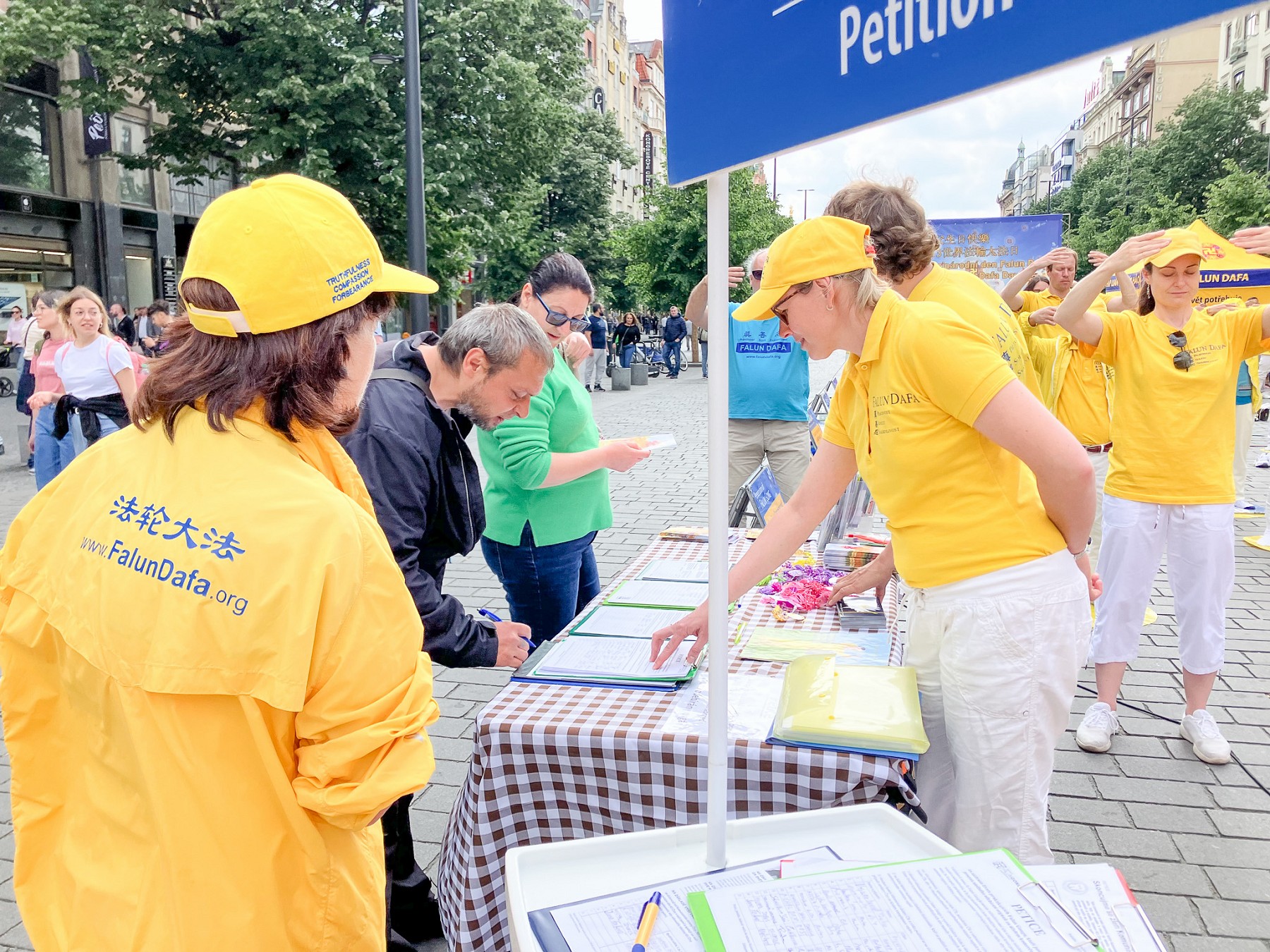 由于世界冰球锦标赛和几场大型演唱会正在布拉格举行,瓦茨拉夫广场聚集了许多当地人和来自世界各地的游客。学员向路人派发真相资料,介绍法轮功真、善、忍的普世价值。告诉人们法轮功提高人们身心健康的神奇效果,然而在中国大陆却遭到中共的残酷迫害。呼吁停止迫害法轮功。