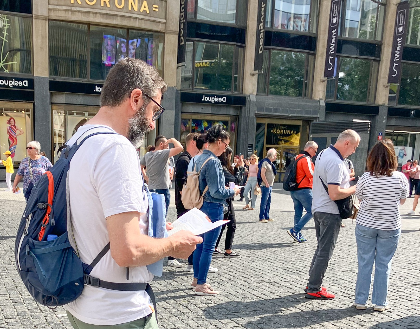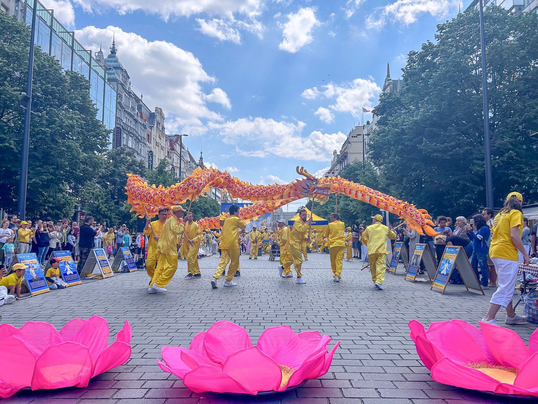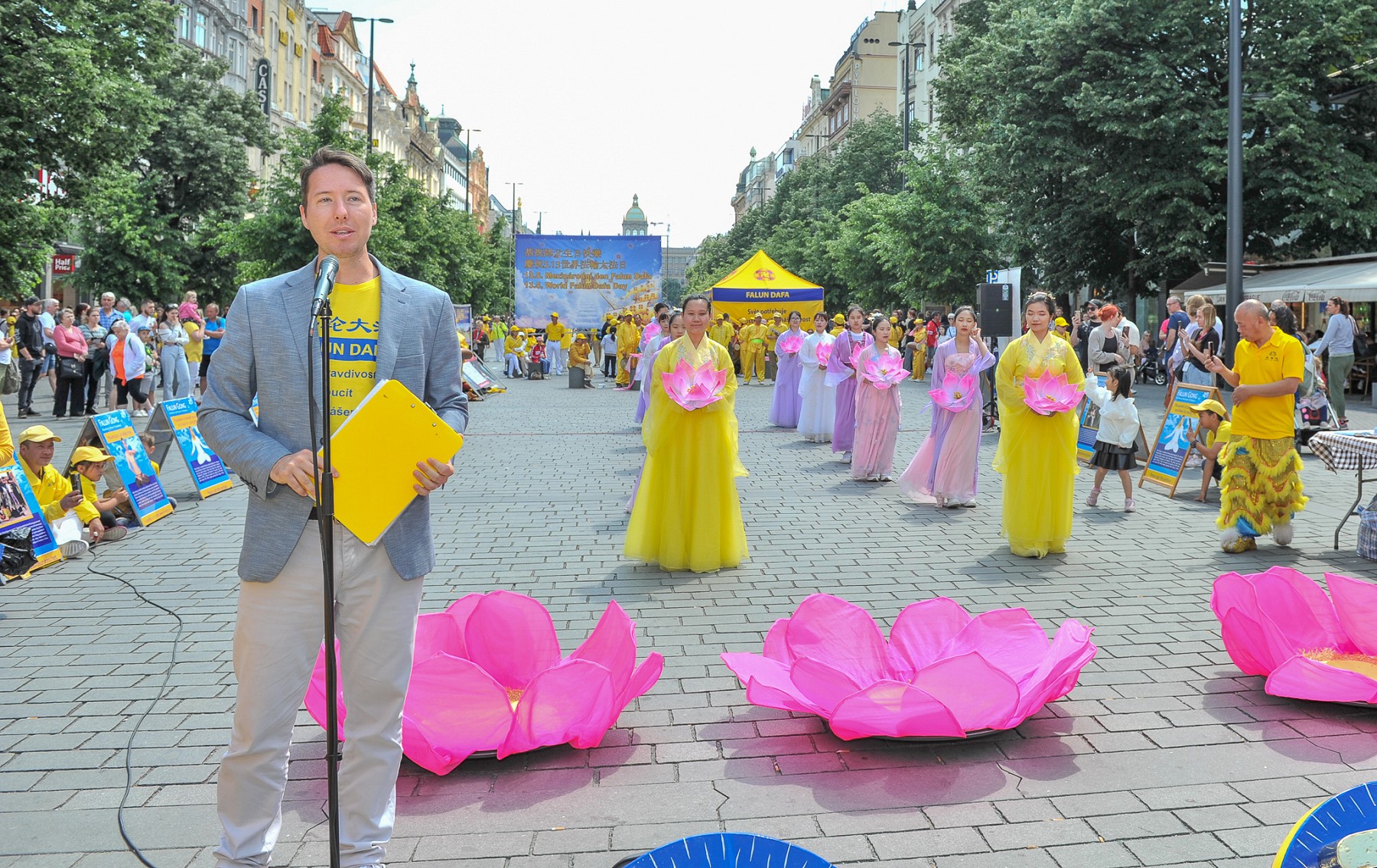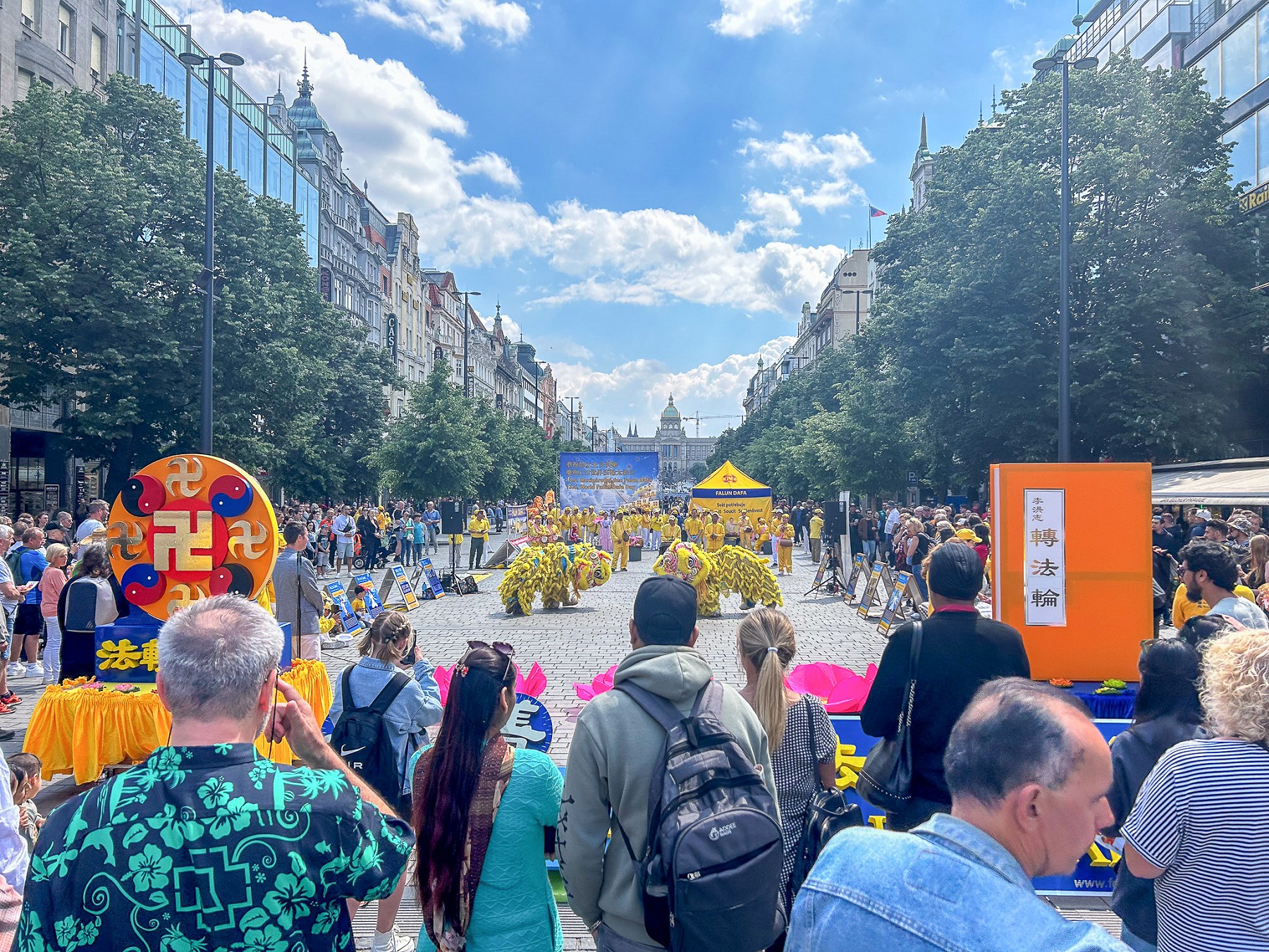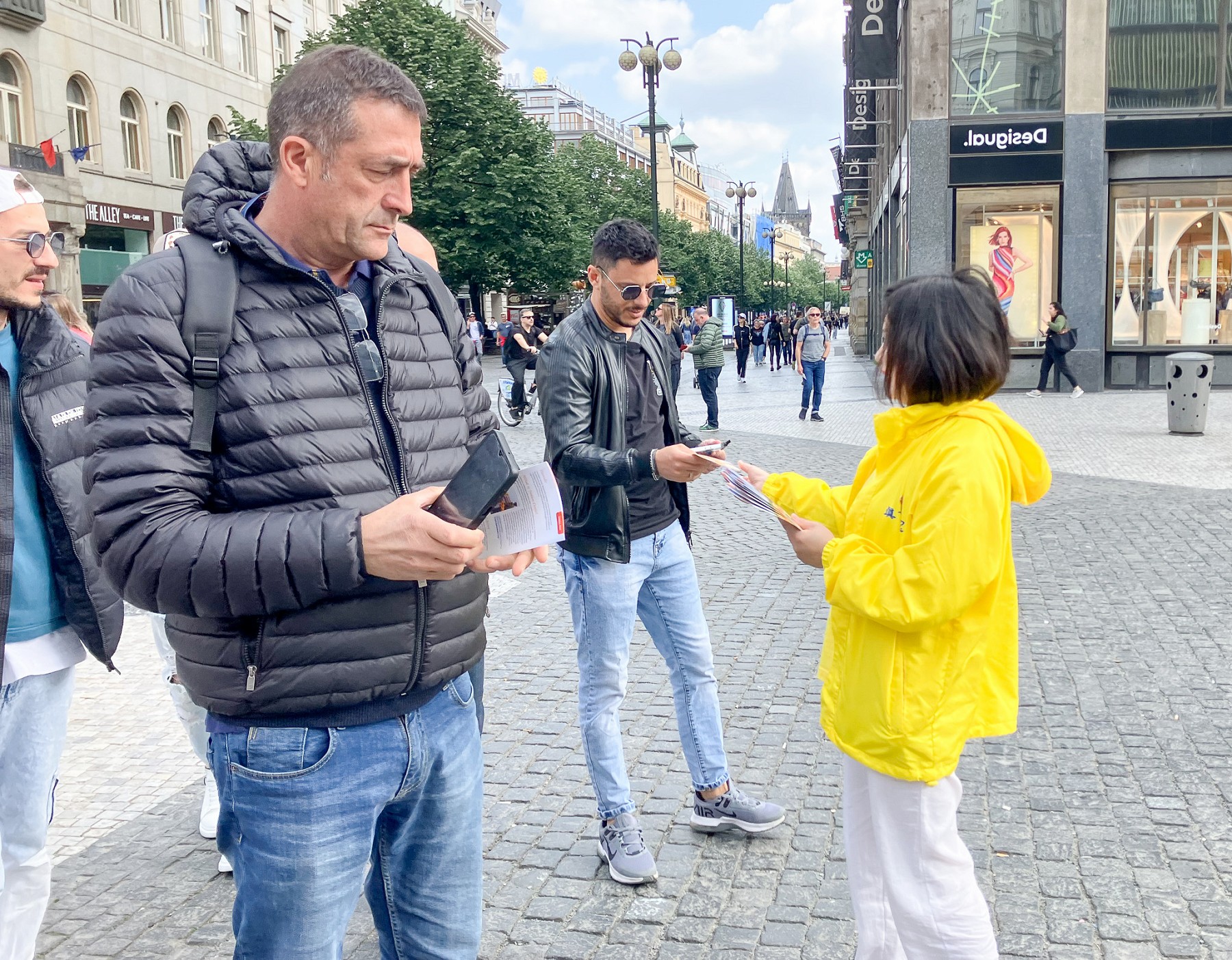 由于世界冰球锦标赛和几场大型演唱会正在布拉格举行,瓦茨拉夫广场聚集了许多当地人和来自世界各地的游客。学员向路人派发真相资料,介绍法轮功真、善、忍的普世价值。告诉人们法轮功提高人们身心健康的神奇效果,然而在中国大陆却遭到中共的残酷迫害。呼吁停止迫害法轮功。